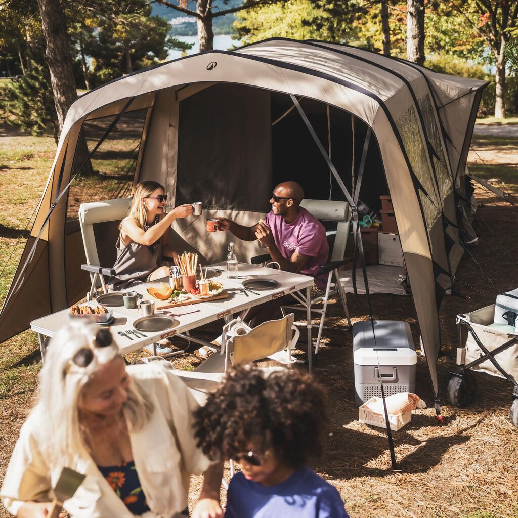 Ovaj sklopivi sto za kampovanje za 6 do 8 osoba dizajniran je da bude kompaktan i čvrst za odmor s porodicom i prijateljima.