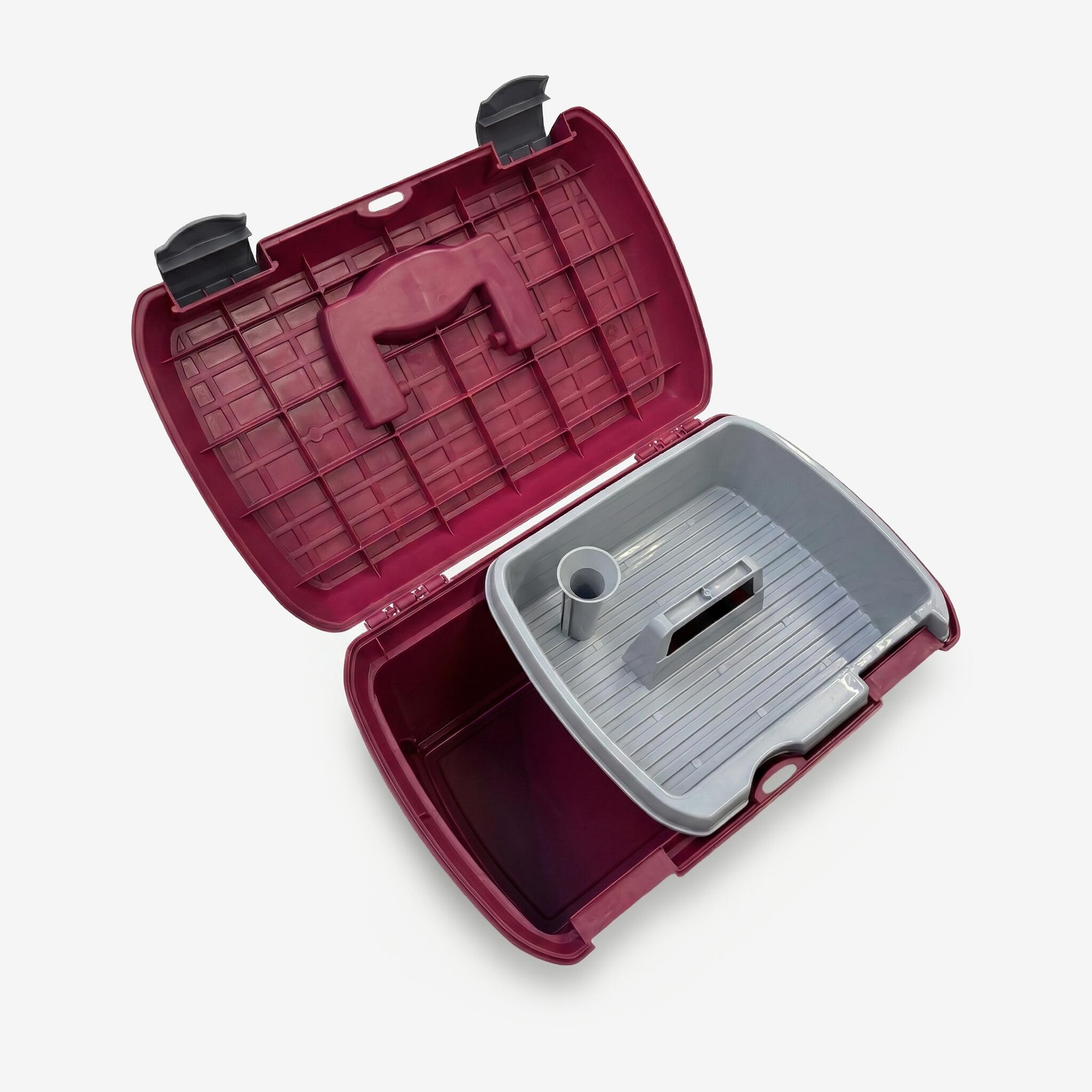 Kutija za pribor za timarenje konja 500 opremljena je pregradom koja vam omogućava da nosite četke i da proizvode za negu držite odvojeno. Može da se koristi kao hoklica (maks. opterećenje 50 kg).