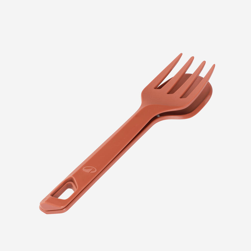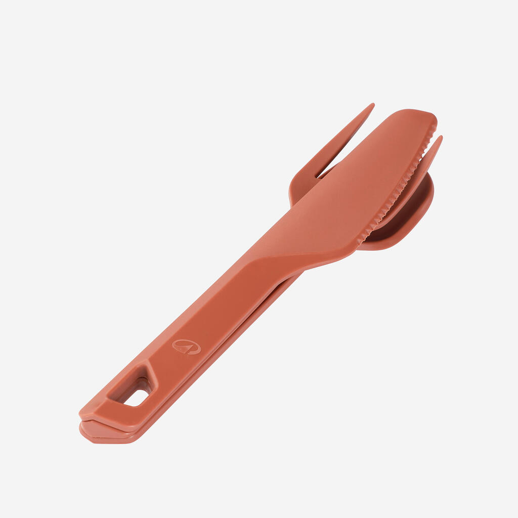 3 komada pribora za jelo (nož, viljuška, kašika), veoma laganih i otpornih, napravljenih od plastike (poliamida), mogu se spajati jedan sa drugim.