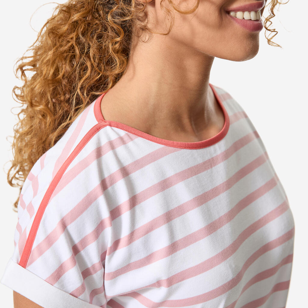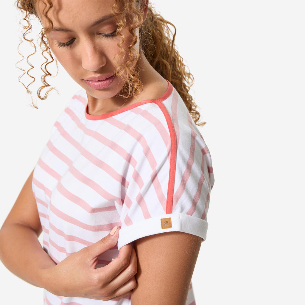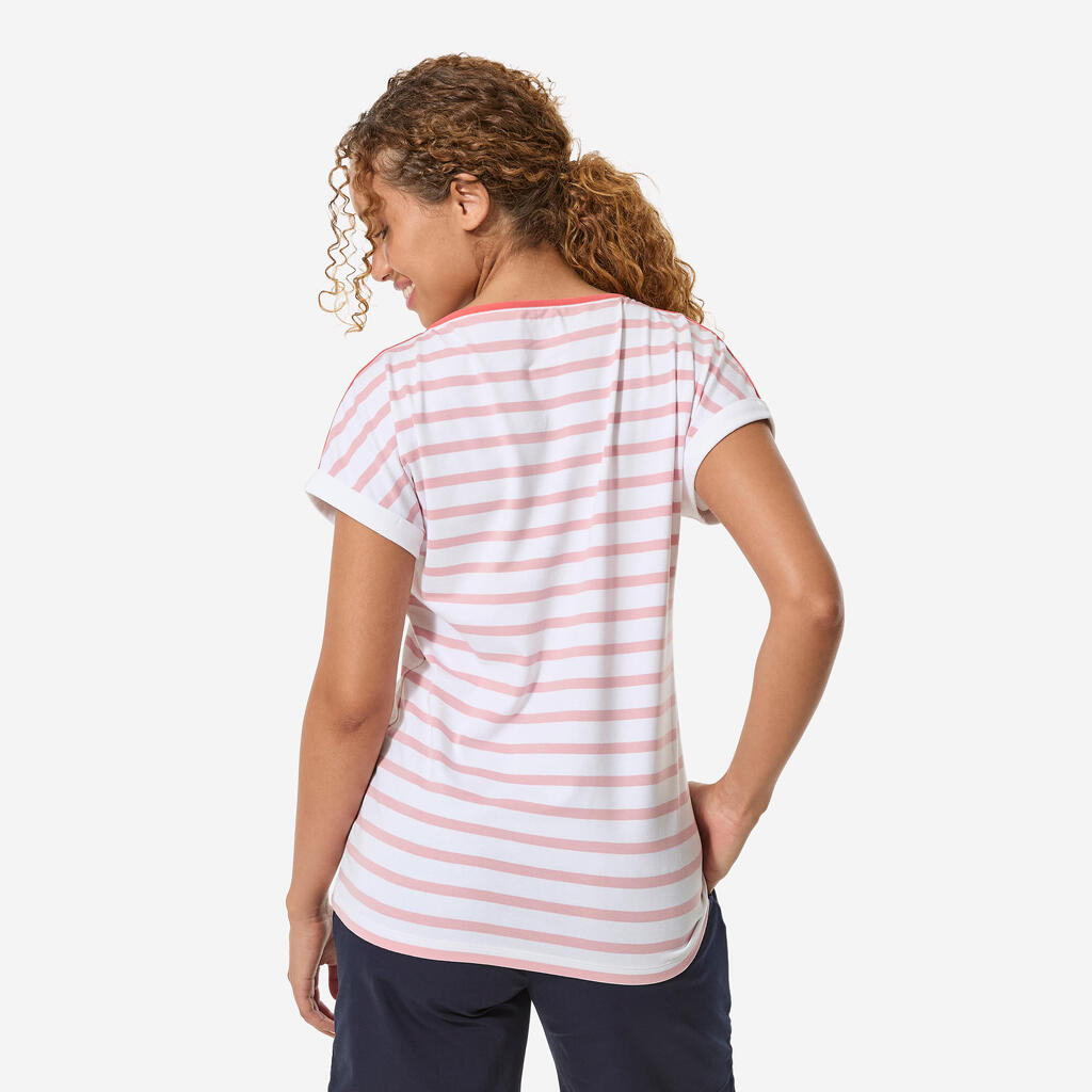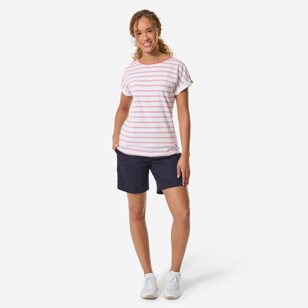 Ova majica za jedrenje kratkih rukava u mornarskom stilu je udobna i meka zahvaljujući pamučnoj komponenti (92%), a obezbeđuje i odličnu slobodu kretanja (8% elastina).