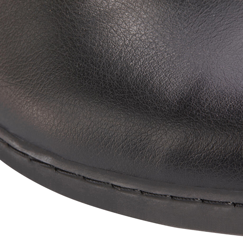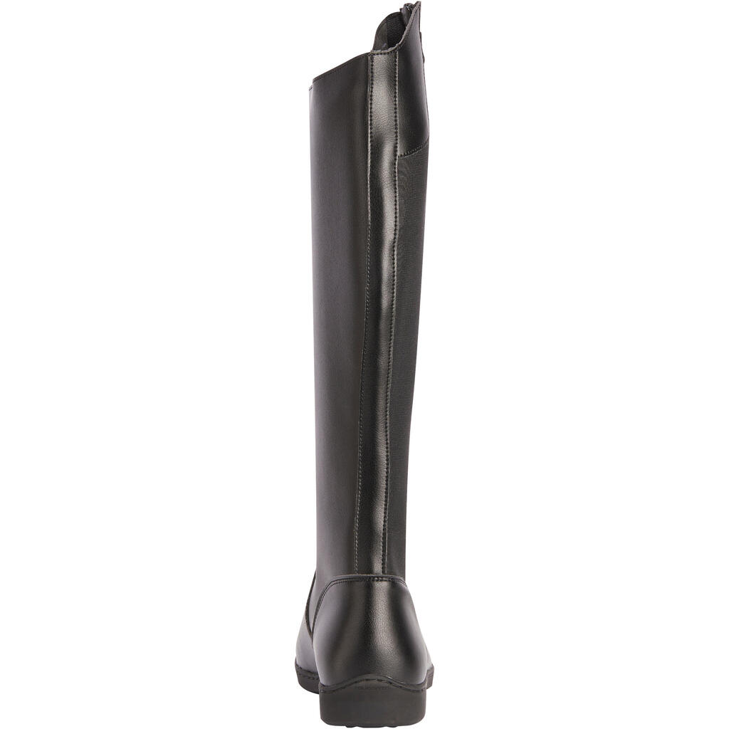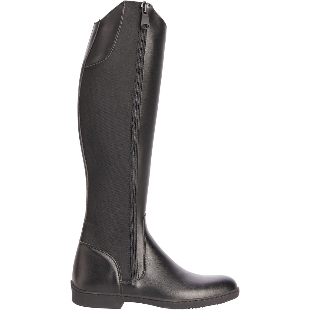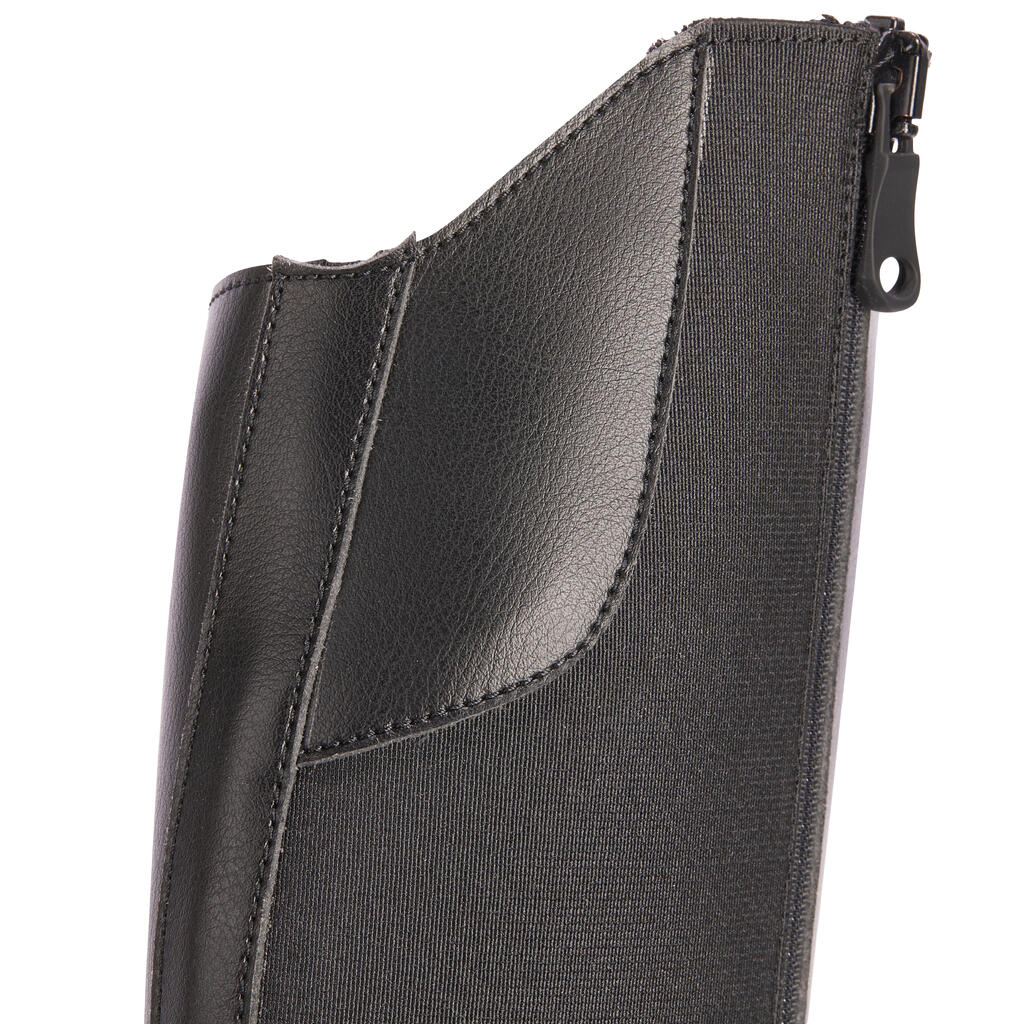 Naše jahačke čizme 500 pružaju vam znatnu fleksibilnost u sedlu. Elastična traka sa strane omogućava dobro pristajanje listovima različitih obima.