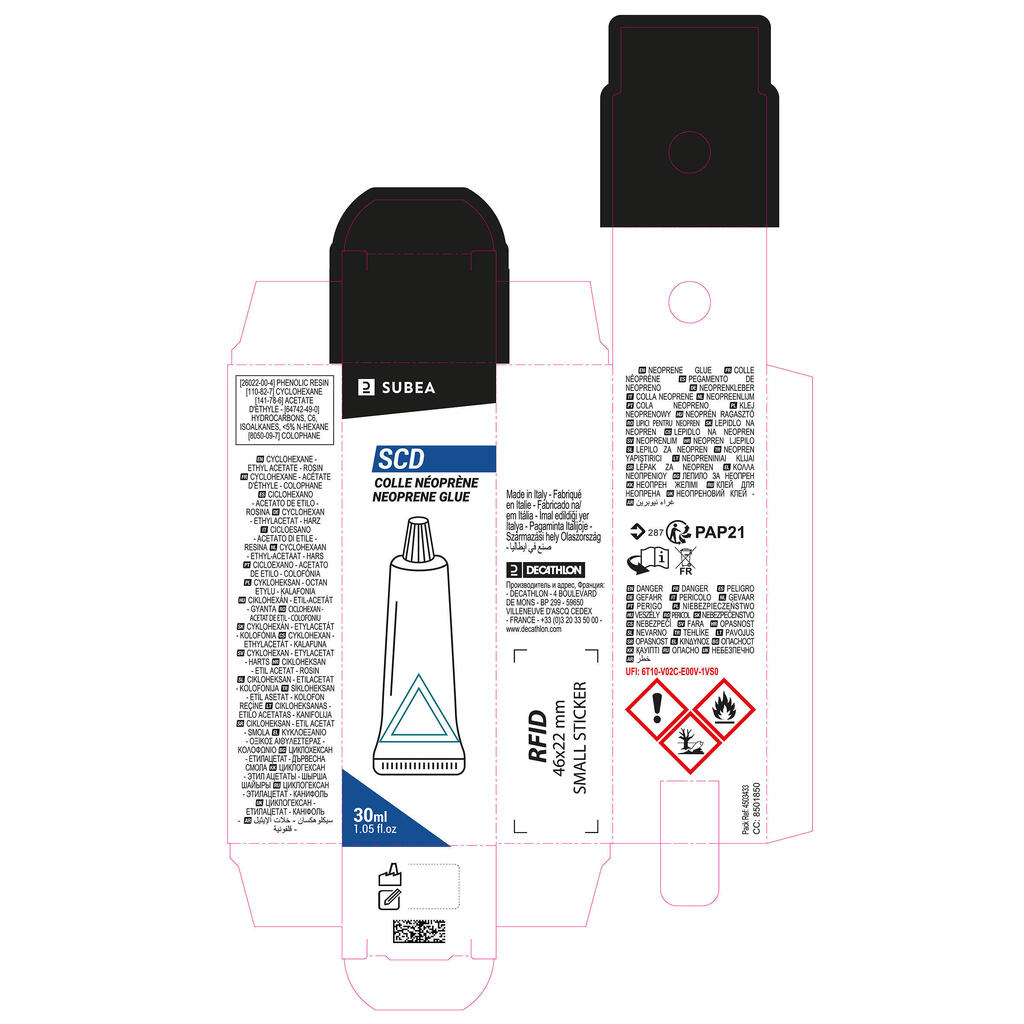 Ovaj lepak omogućava ponovno lepljenje i popravku ronilačkog odela od sintetičke gume ukoliko se ošteti ili izbuši.
