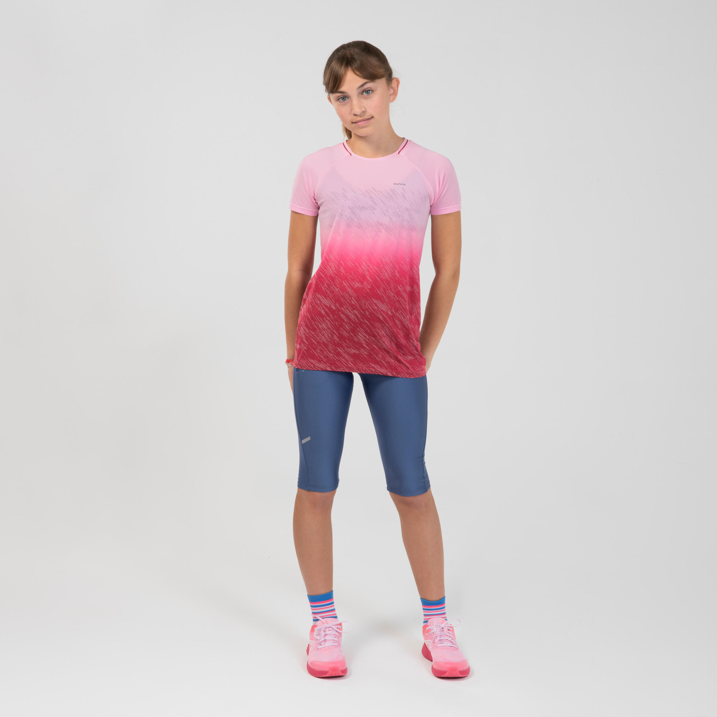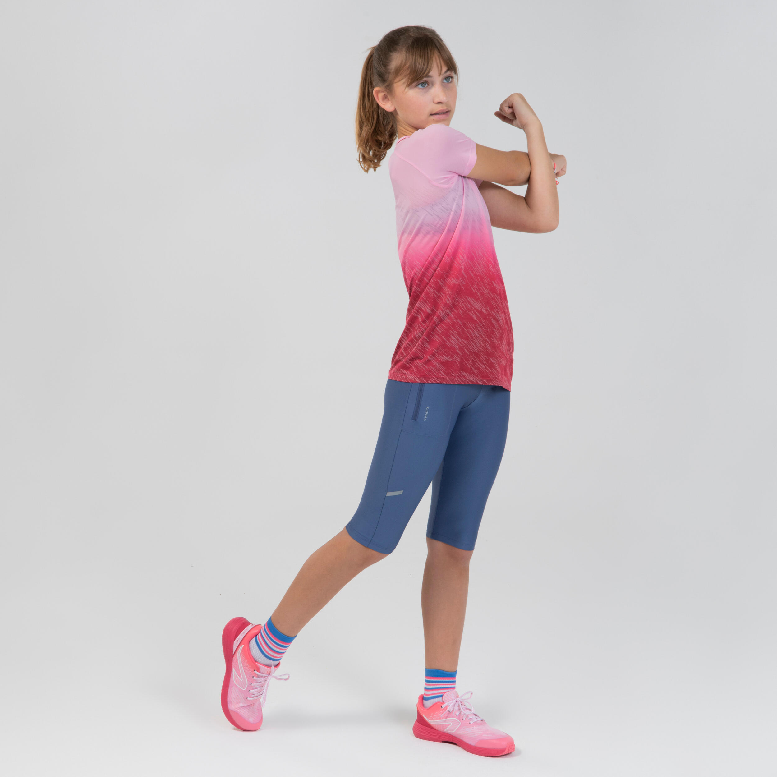 Pošto su sačinjene od recikliranog materijala koji propušta znoj i imaju učkur koji ih drži čvrsto na mestu, ove poluduge helanke za trčanje savršene su za trening trčanja vašeg deteta.