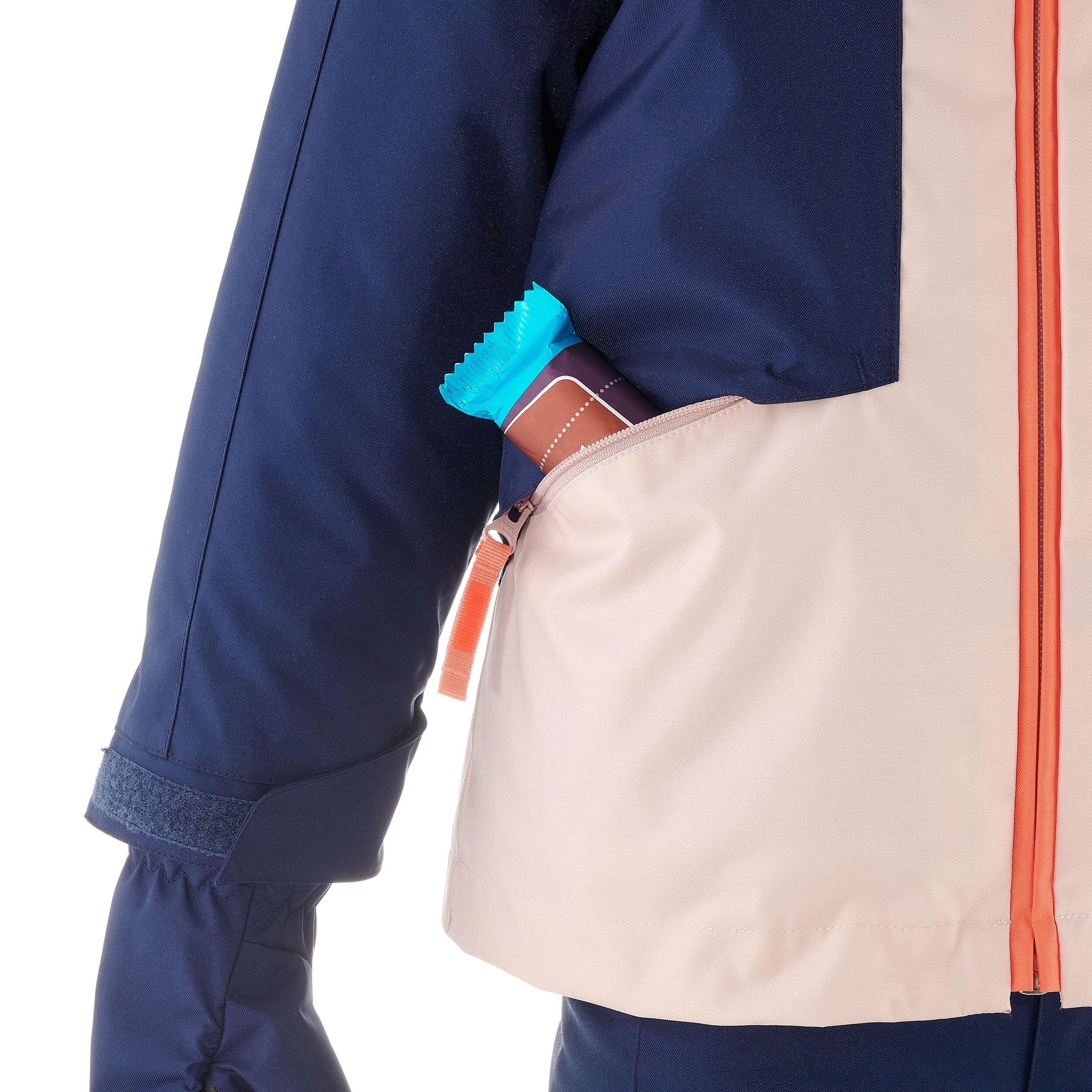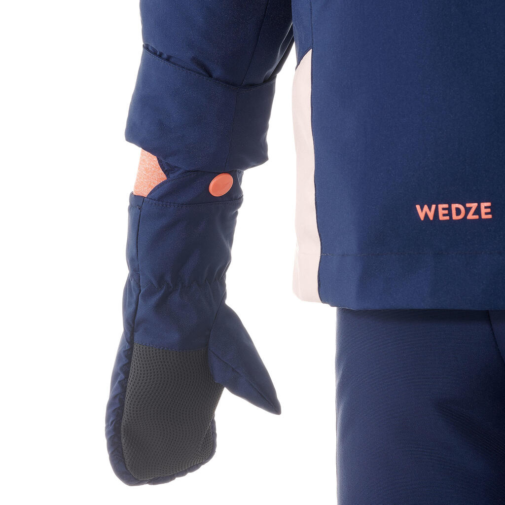 Topla ski jakna i pantalone, vodootporni i sa podesivom dužinom (rukavi/nogavice).Rukavice i mogućnost kombinovanja tri odevna predmeta za zaštitu mališana od hladnoće i sprečavanje prodora snega.