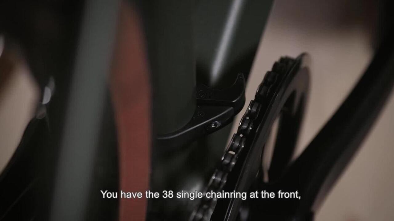 Bicikl smo opremili gravel tubeless točkovima 23c i pogonskim sklopom sa jednostrukim lančanikom.