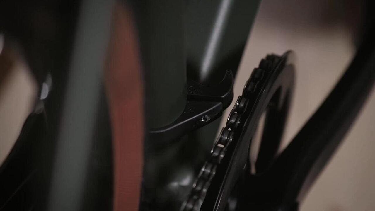 Zadnji menjač sa sistemom "kvačila" da drži menjač i sprečava preskakanje lanca. Može se osloboditi za lakše skidanje točka.