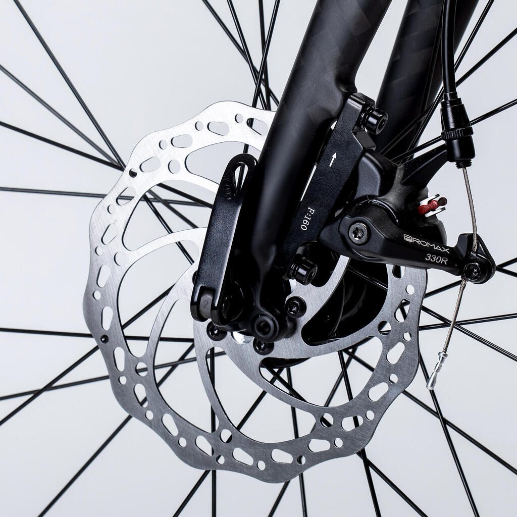 Na biciklu smo promenili ram diska RC120 tako da smo prilagodili zazor za gumu dimenzija 700 x 38. Ima takođe mehaničke disk kočnice.