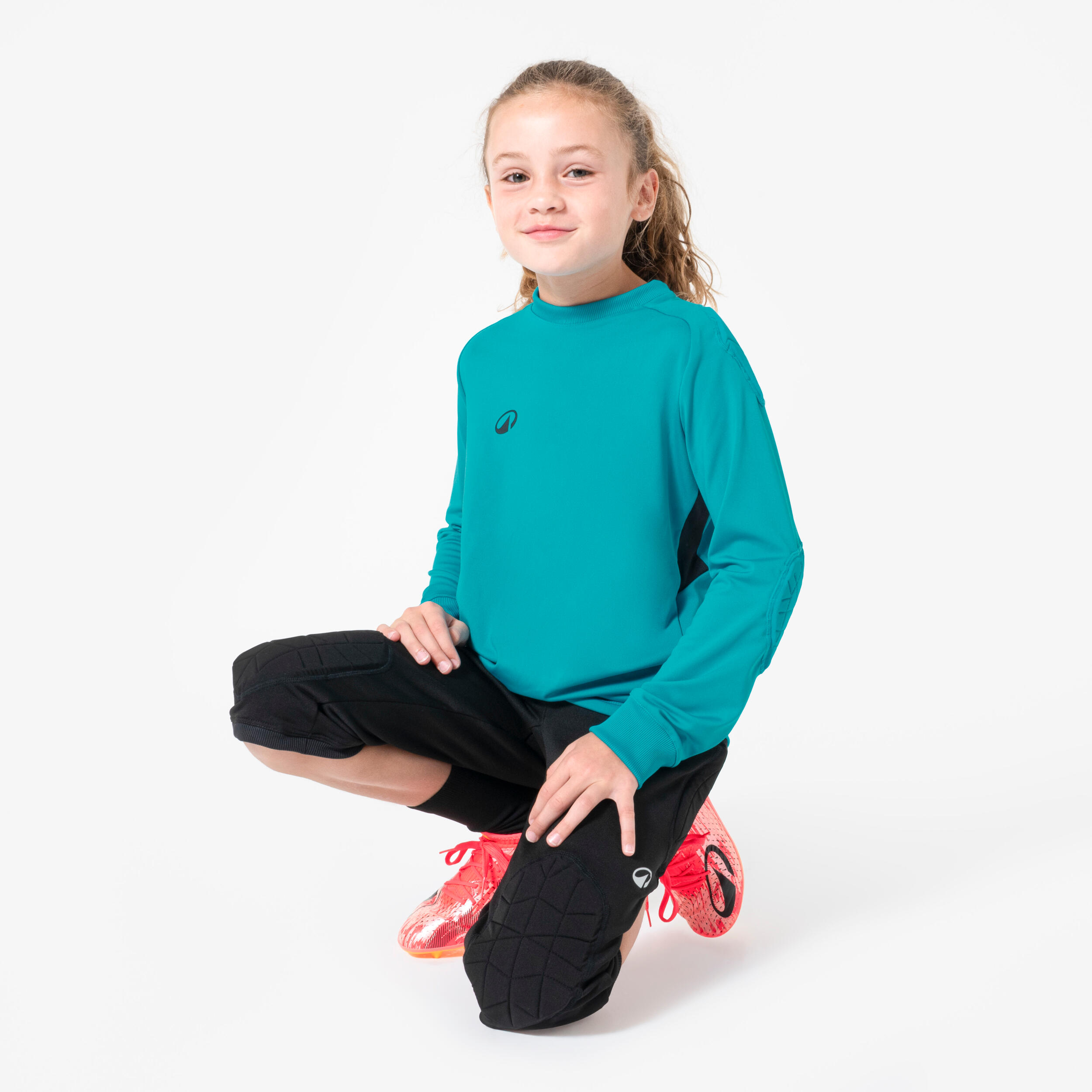 Naši dizajneri za fudbal razvili su ove 3/4 pantalone za golmane F100 za učenje bacanja za loptom i hvatanja lopte.
