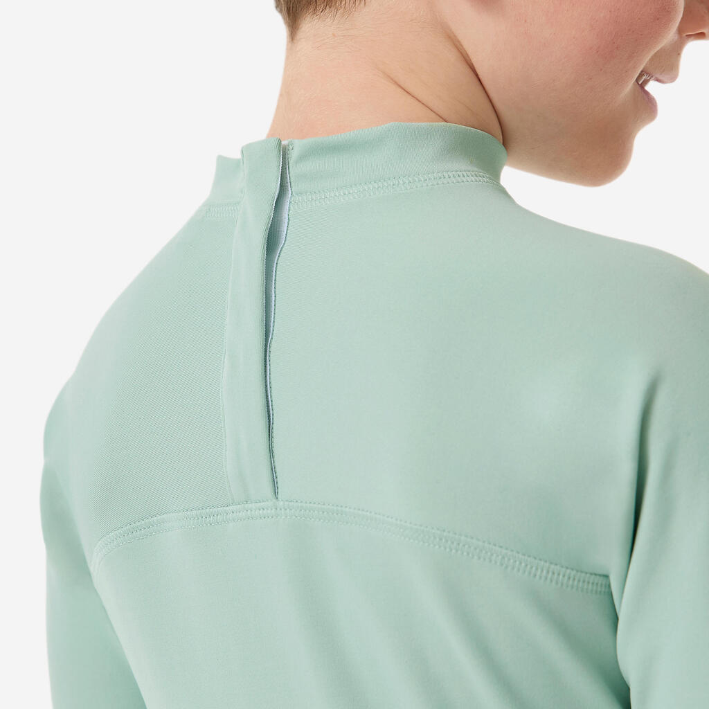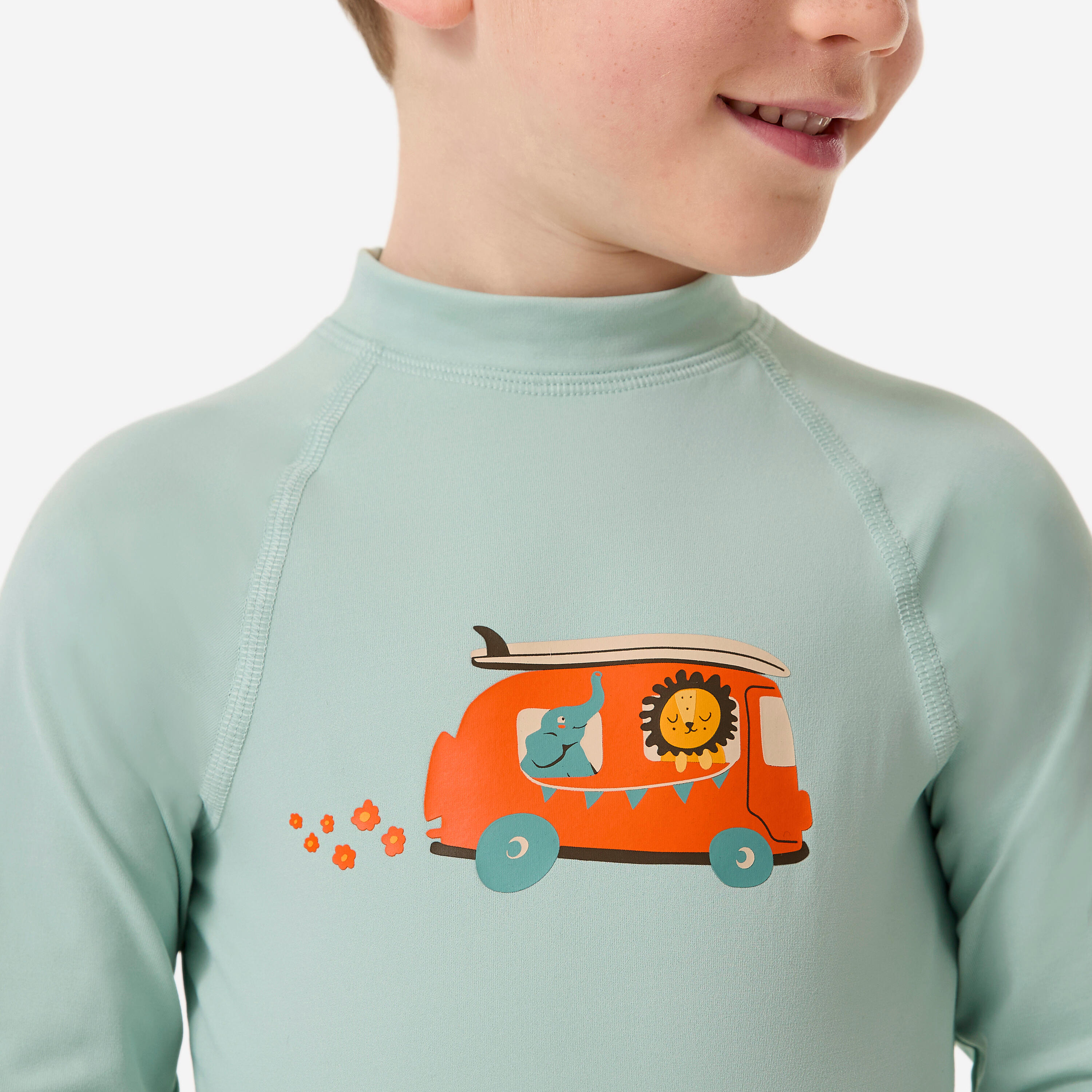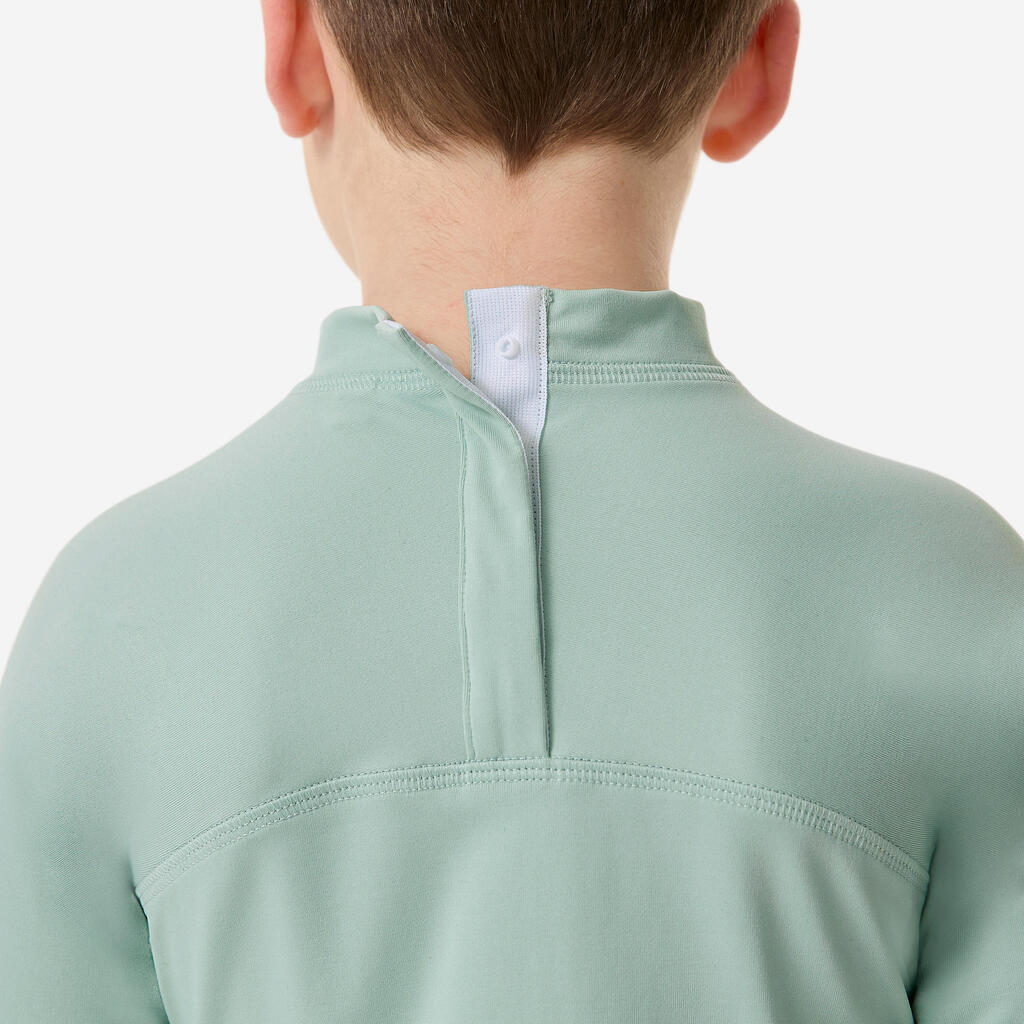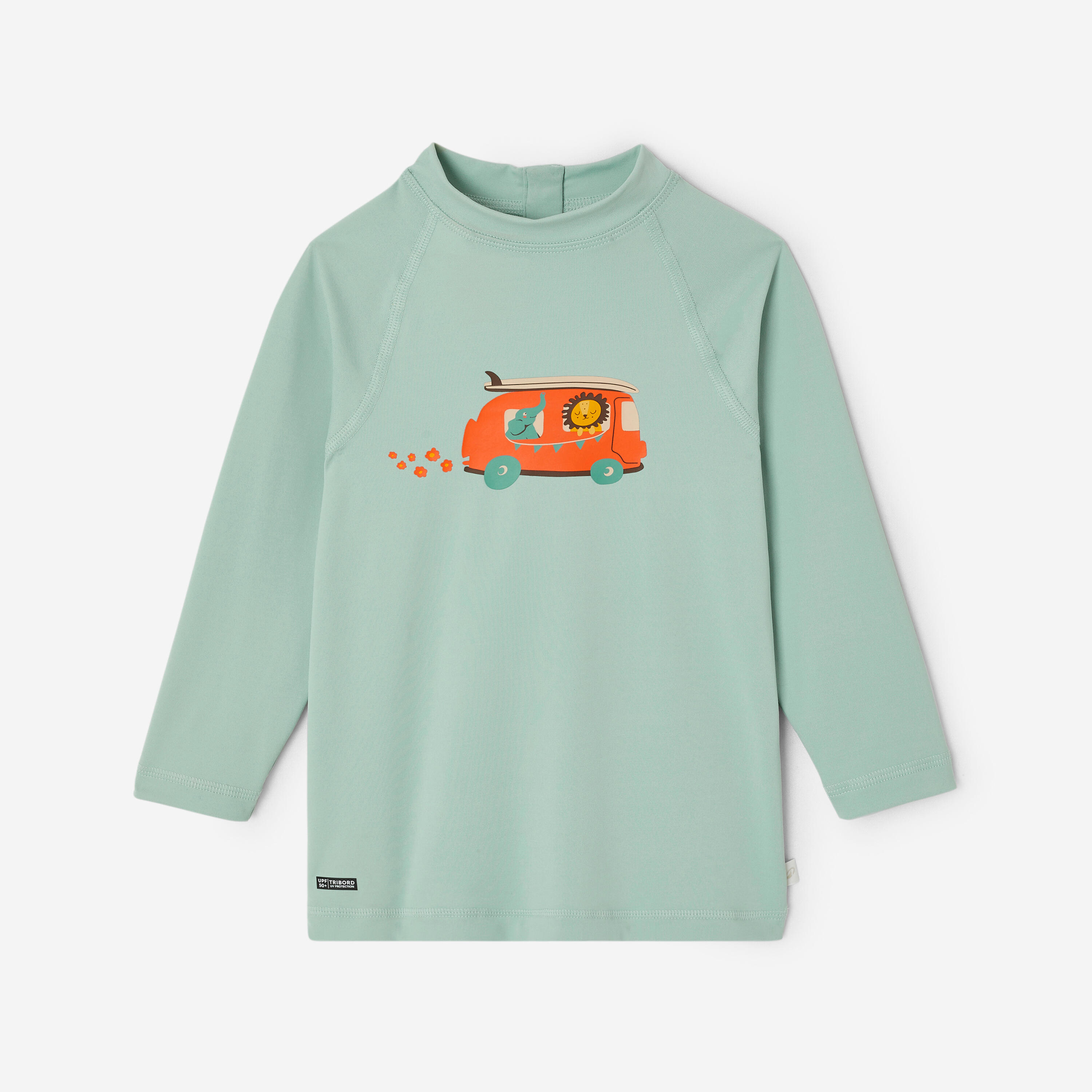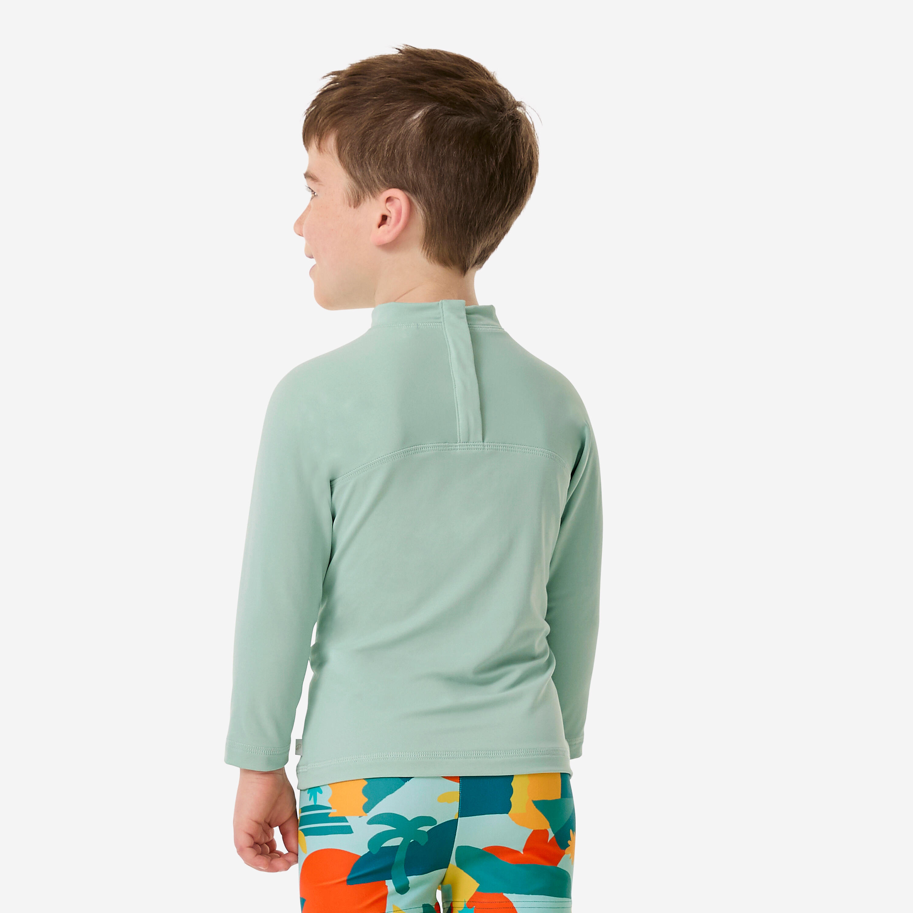 Ova majica s UV zaštitom štiti dete čak i kad je u vodi i maksimalno ga pokriva. Lako se oblači zahvaljujući drikerima na zadnjoj strani kragne.