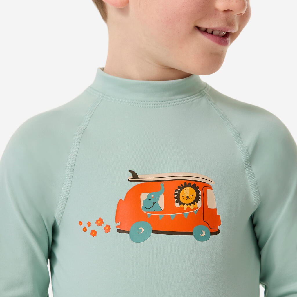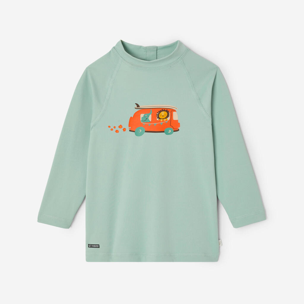Majica dugih rukava s UV zaštitom koja štiti bebe od sunca. Deca se mogu slobodno igrati, na bazenu ili na plaži.