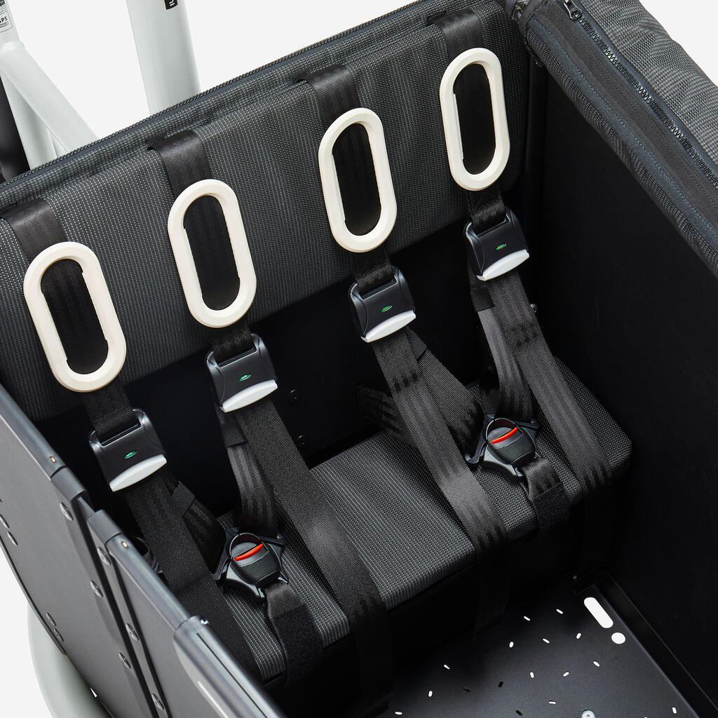 Ako tražite veliku nosivost, bicikl Cargo F900E može da primi do 4 dece. Prodaje se potpuno opremljen sa nosačem, zaštitom od kiše, vetrobranom i vratima za lako pristupanje.