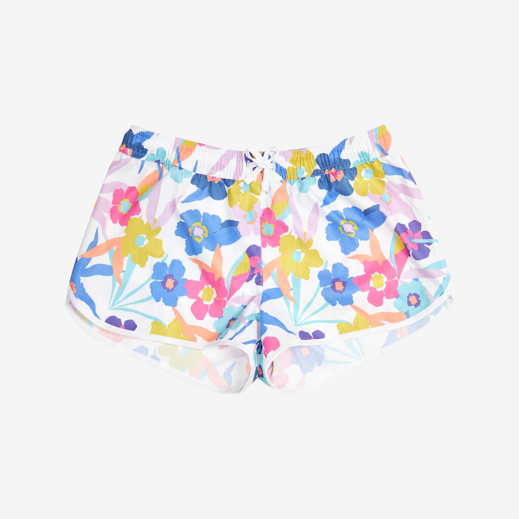 Ovaj šorts za kupanje namenjen devojčicama nosi se preko kupaćeg kostima, da bi on ostao na mestu i da bi bilo udobno u toku uživanja u sportovima na vodi. Elastični pojas.