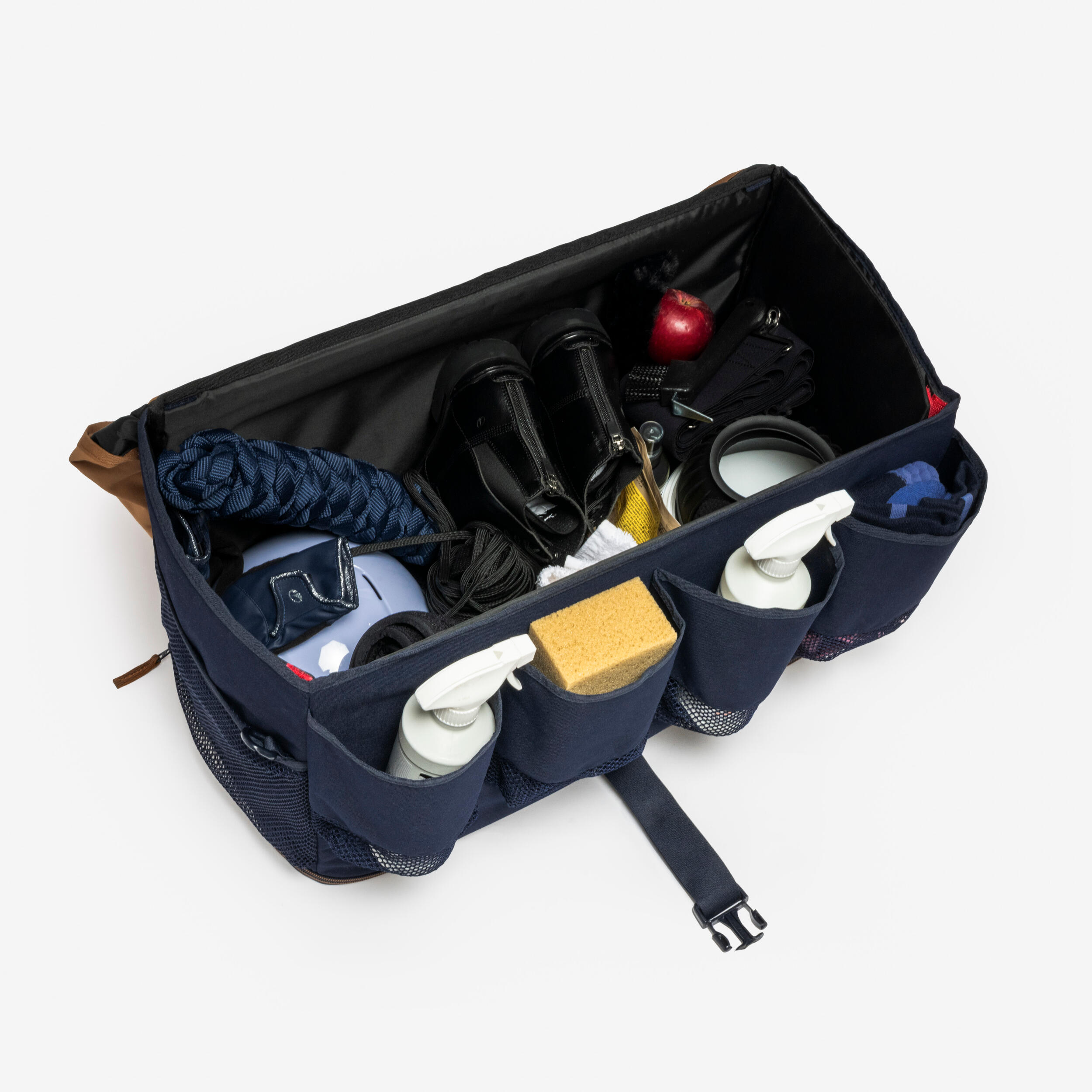 Naši dizajneri, i sami jahači, su razvili ovu torbu za držanje i sušenje vaše opreme na vratima boksa.