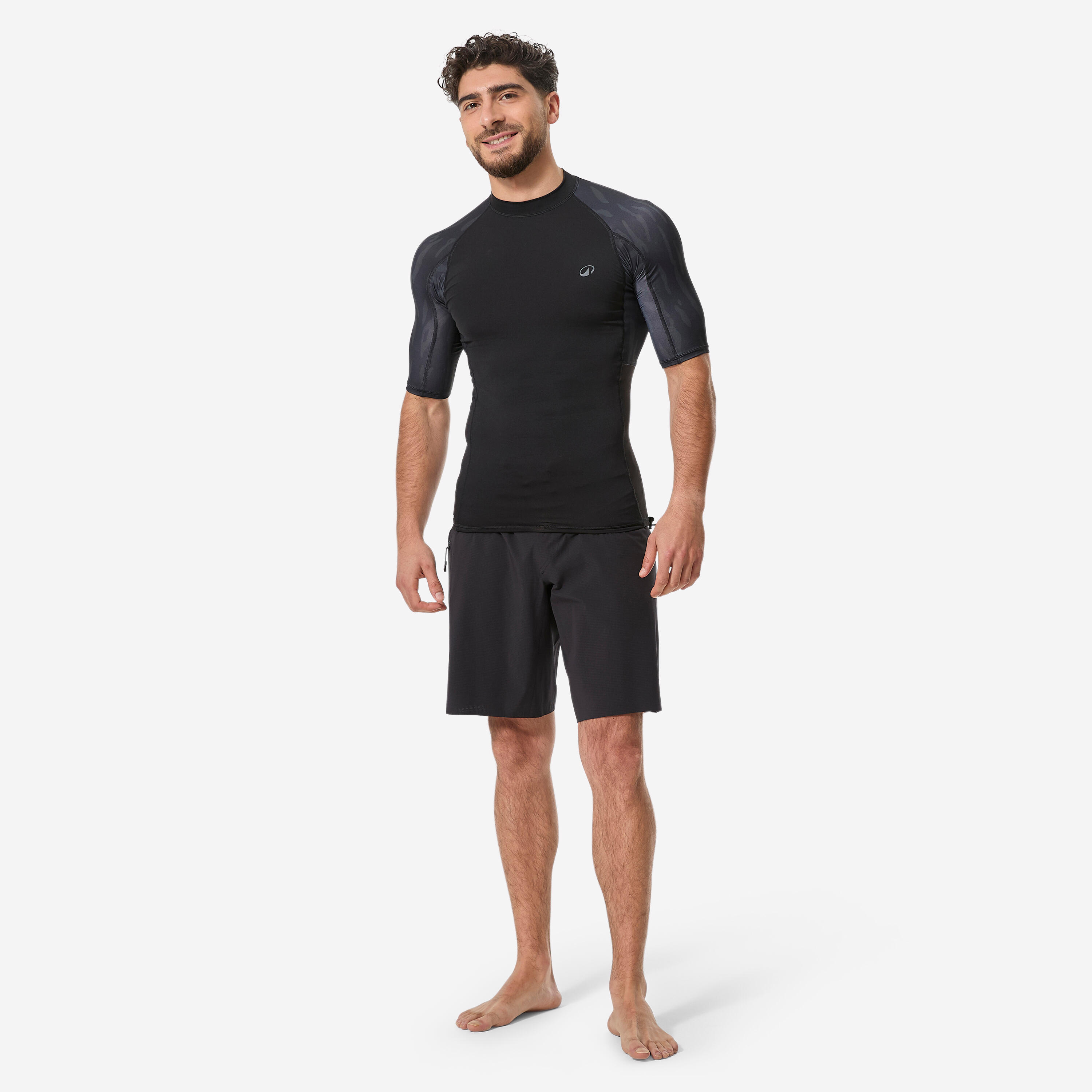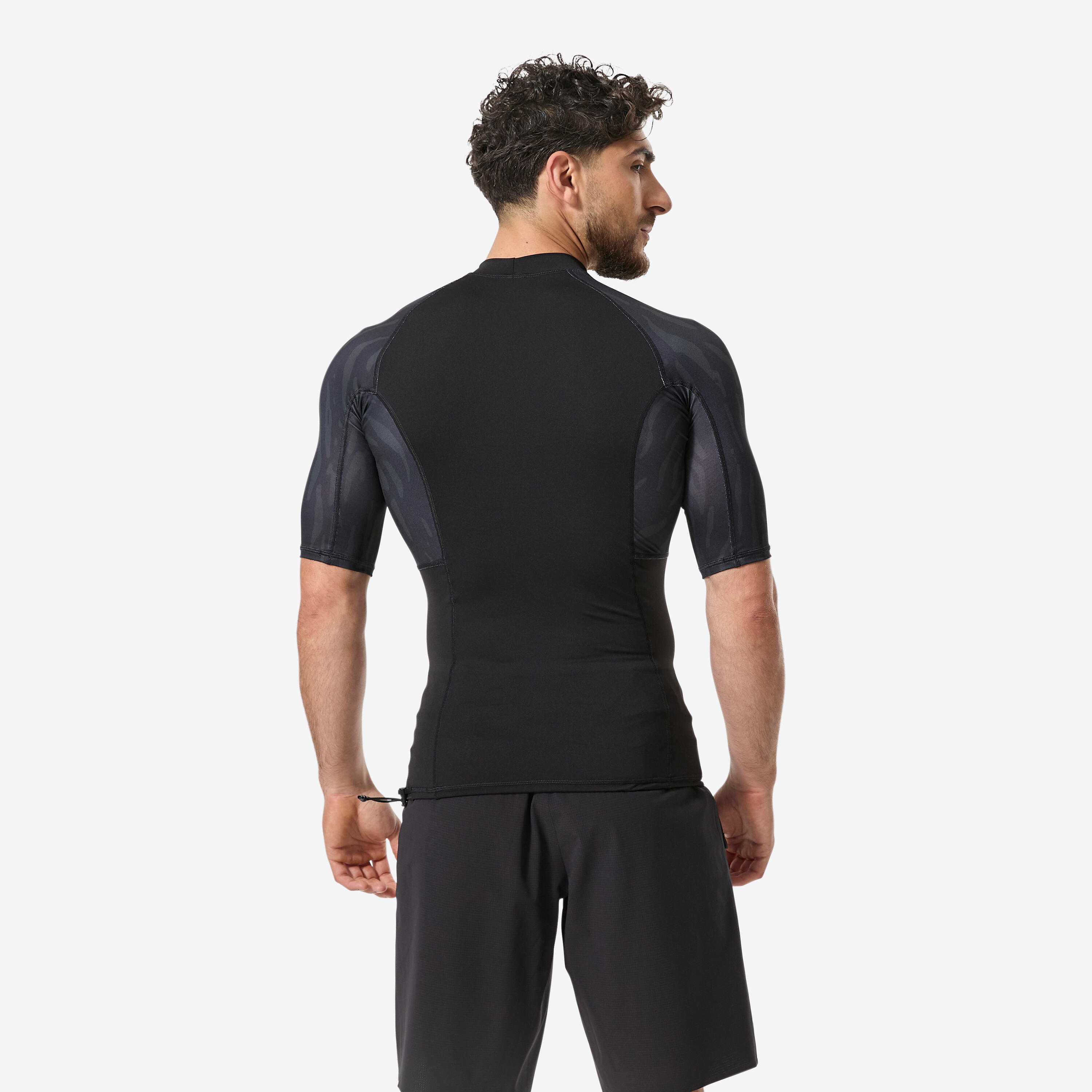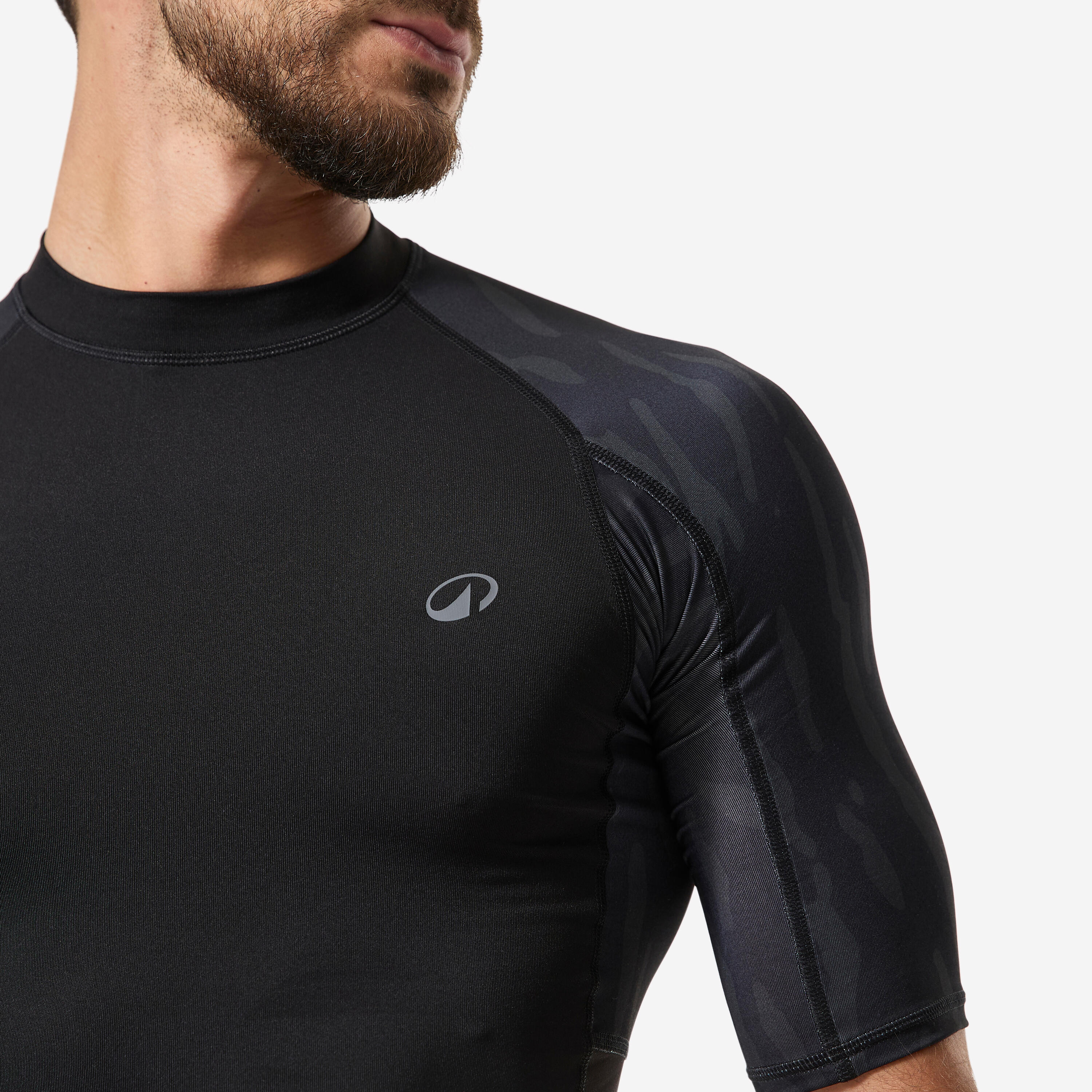 Crna muška majica kratkih rukava s UV zaštitom za surfovanje - 500