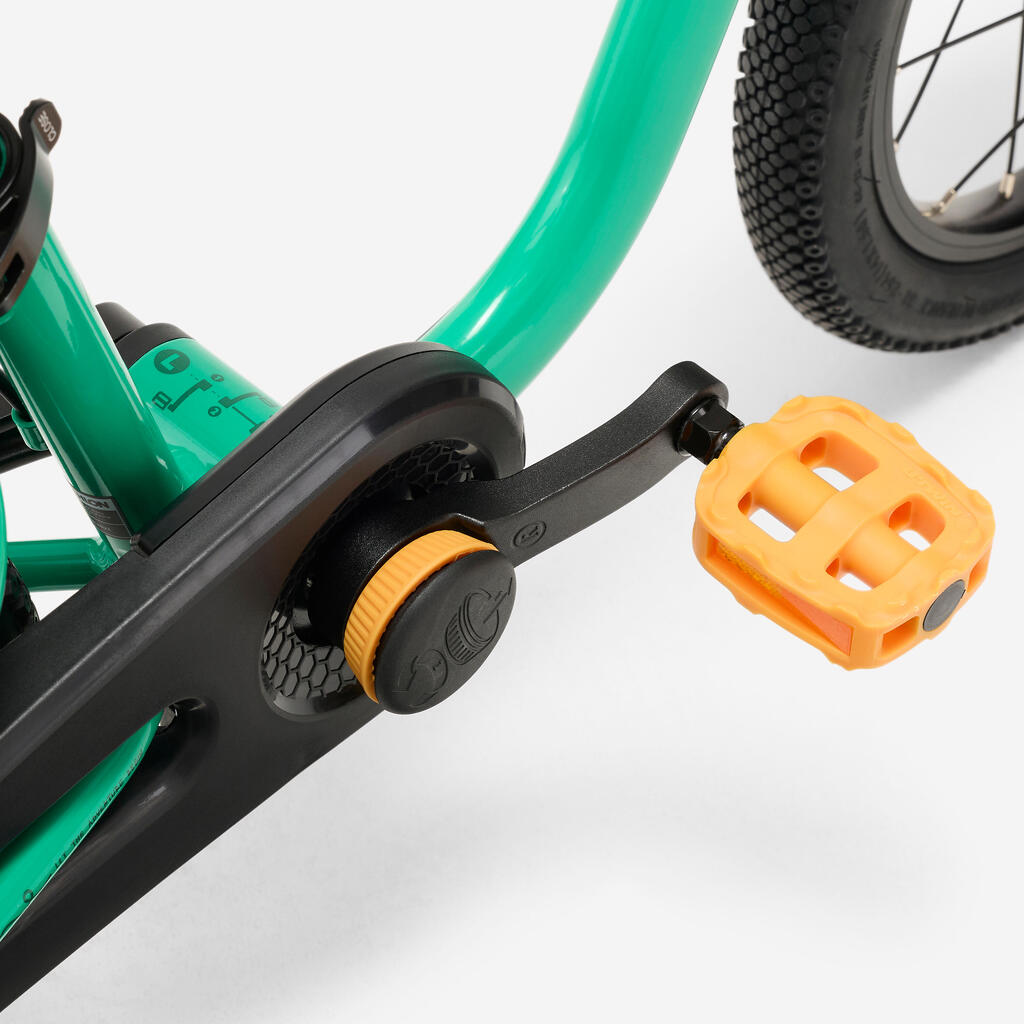 Žuti elementi na biciklu imaju funkciju olakšavanja učenja: ručica kočnice i uklonjive pedale.