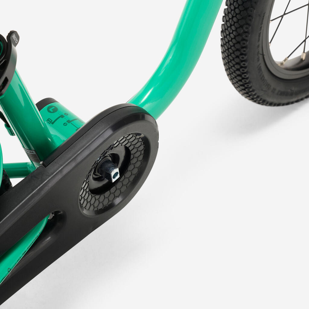 Kako bismo sprečili da deca stavljaju prste gde ne bi smela, mehanički elementi pogonskog sklopa (poluga, lanac, spojnica itd.) zaštićeni su posebnim štitnikom. Time se ujedno sprečava rizik od upetljavanja pertli ili prljanja odeće.