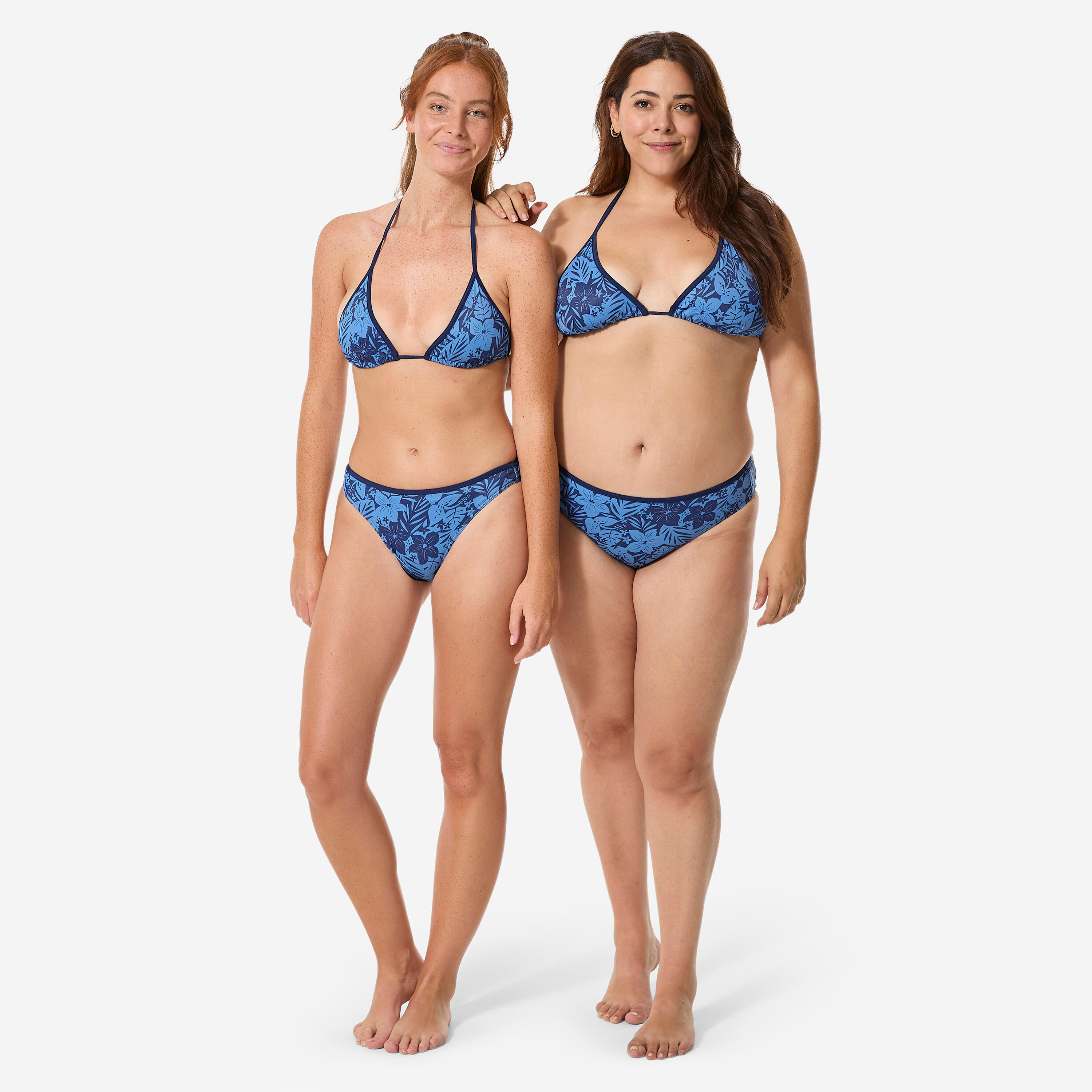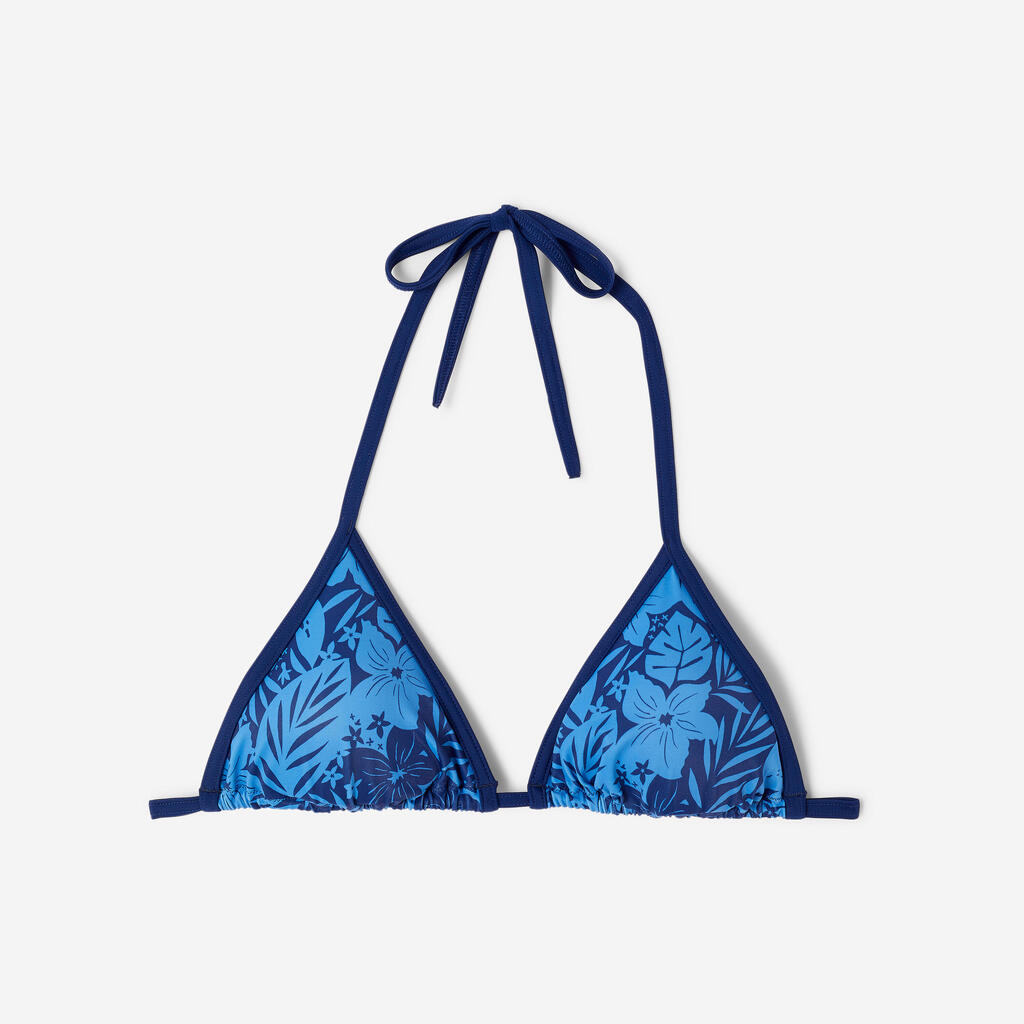 Trouglasti bikini s nefiksiranom donjom stranom lako se prilagođava različitim građama tela. Zbog male podrške koju pruža, naročito dobro pristaje malim ili srednjim veličinama grudi. Veoma je udoban, zahvaljujući vezivanju na vratu i leđima, kao i trouglovima koji se mogu pomerati, omogućavajući vam da birate koliko ćete otkriti grudi. Udobnosti doprinosi i kroj i mekoća materijala.