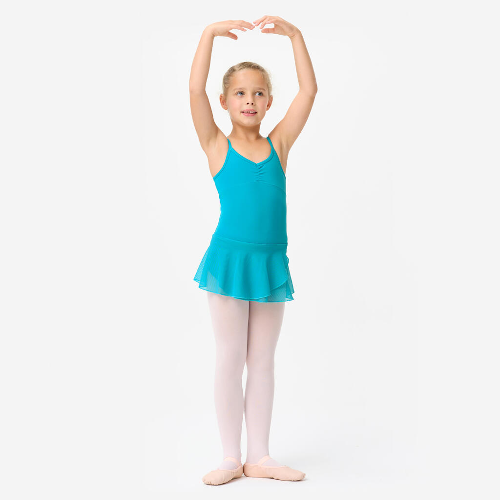 Savršen triko sa suknjom za sve nivoe veštine, od početnica do iskusnih plesačica. Tanke trake, skupljene u prednjem delu i postavljene, i integrisana suknja od muslina će olakšati da vidite pokrete