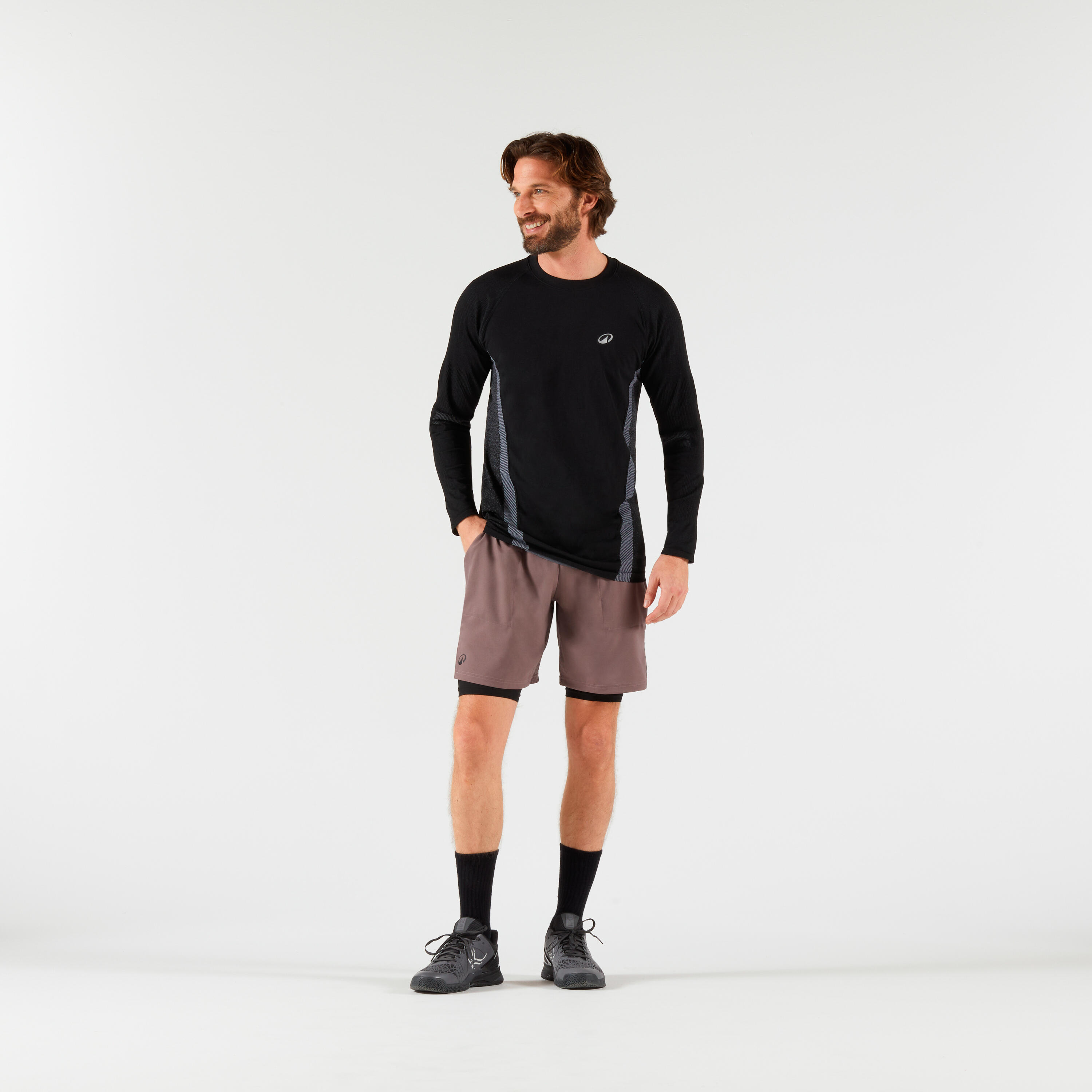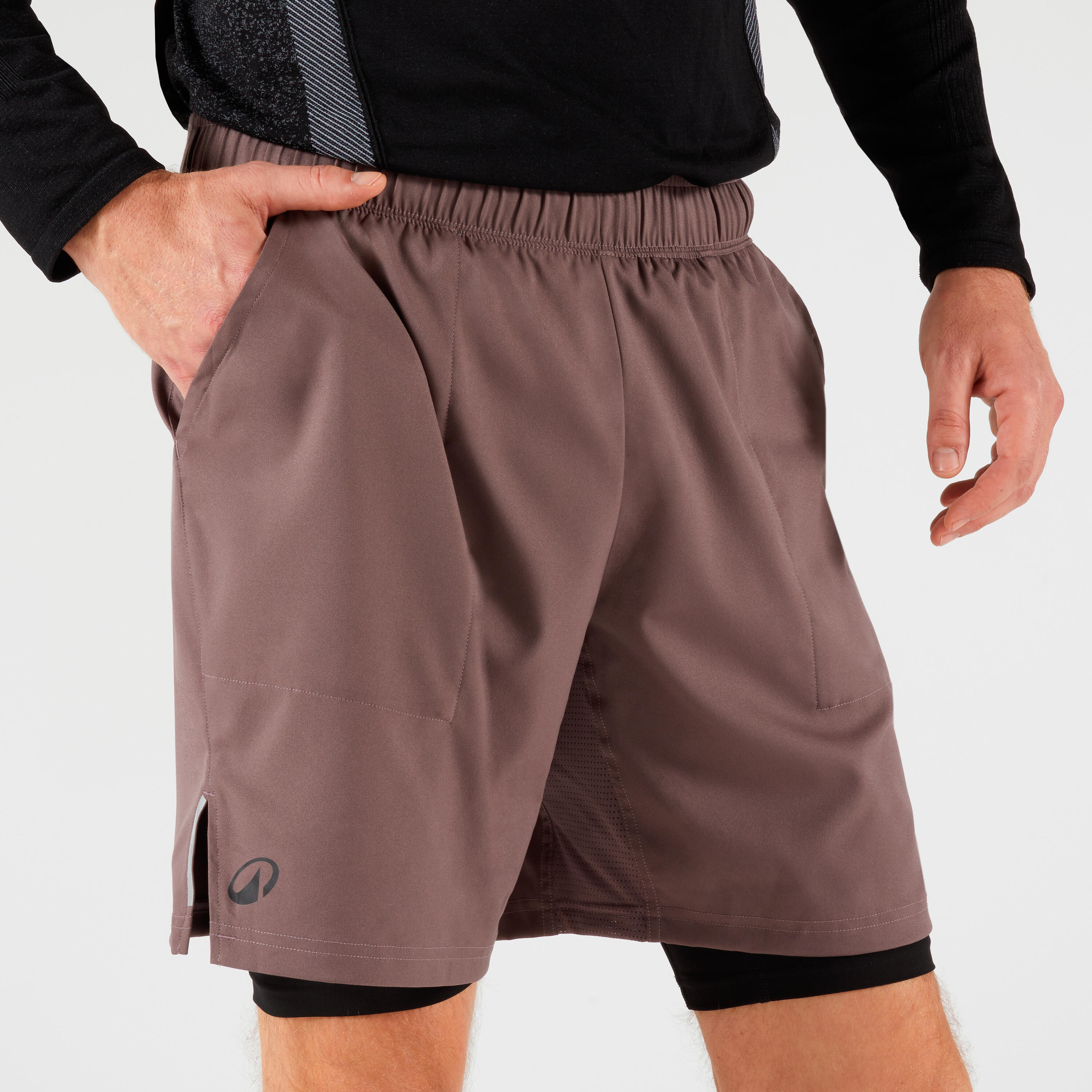 Braon-crni muški termo šorts i podšorts 2-u-1 za tenis
