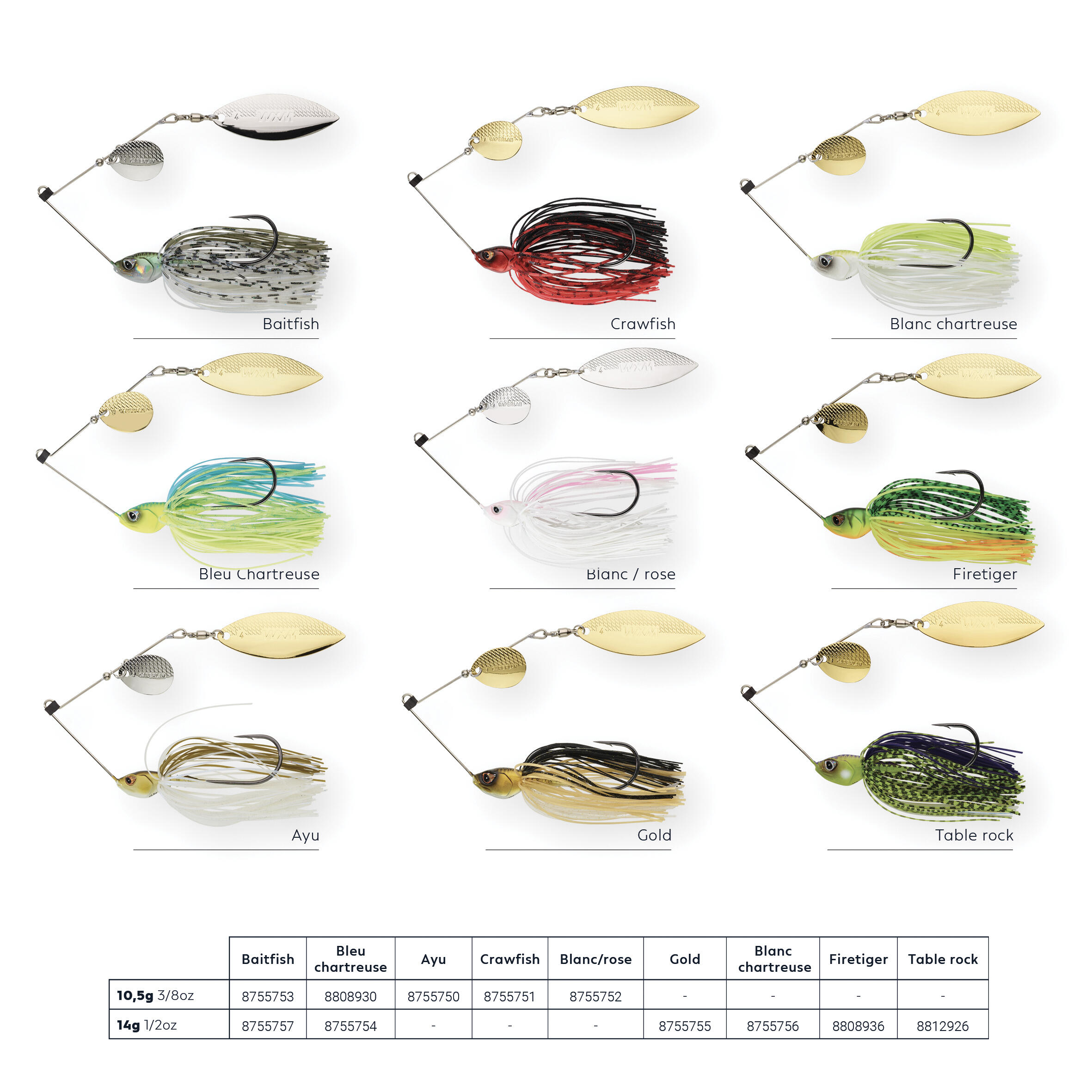 Naši dizajneri, i sami ribolovci, napravili su ovu spiner varalicu za ribolov grabljivica. Dostupna u dve veličine (10,5 / 14 g) i šest boja.