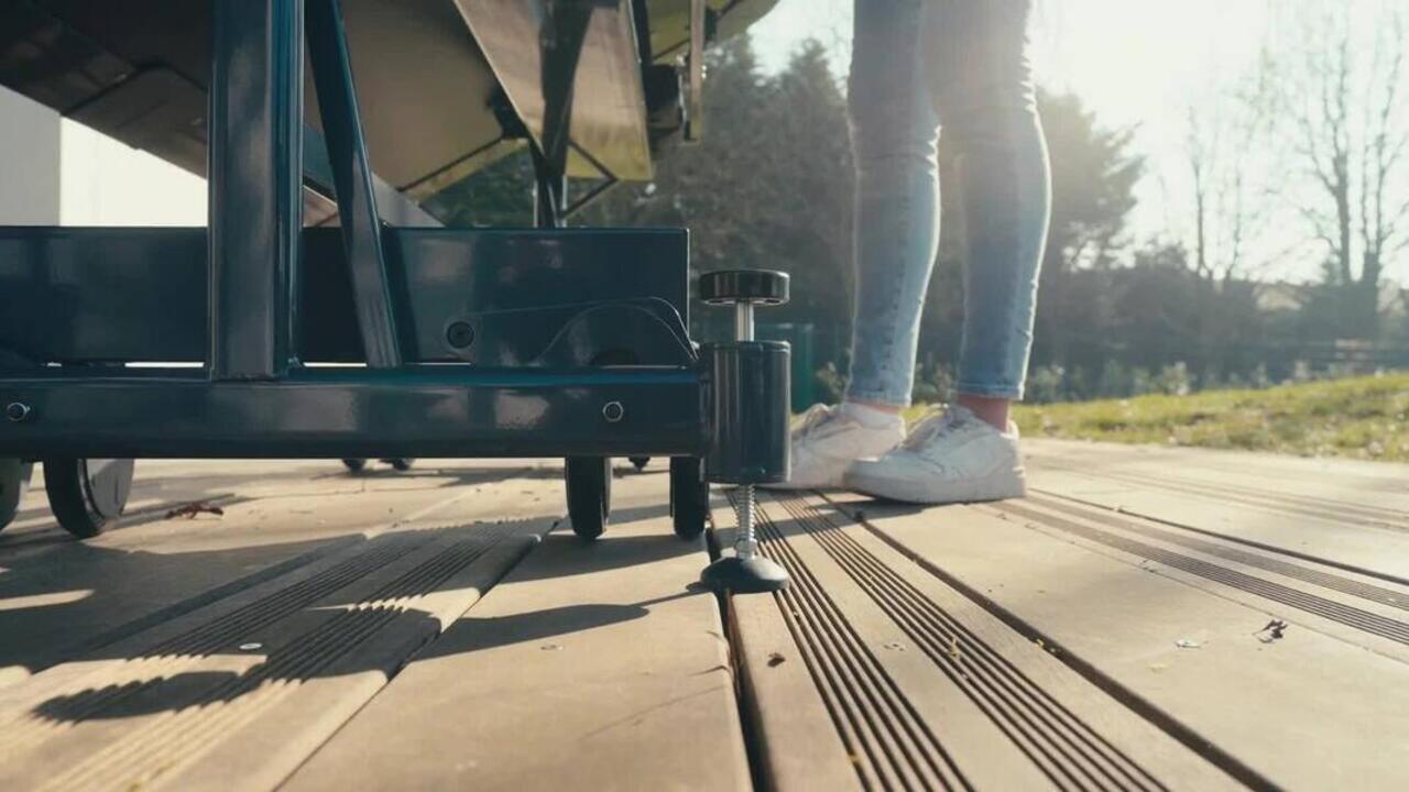 Zahvaljujući posebnim potpornjima na nožicama vaš sto za bilijar će biti stabilan čak i po vetru (otpornost testirana na do 60 km/h u tunelu). Sistem za podešavanje gornjeg dela olakšava podešavanje po visini i da li je ravan bez podizanja stola. Priložena libela osigurava precizno podešavanje. Vaš sto za bilijar može da se namesti na neravnom tlu do 6 cm za optimalno iskustvo igre.