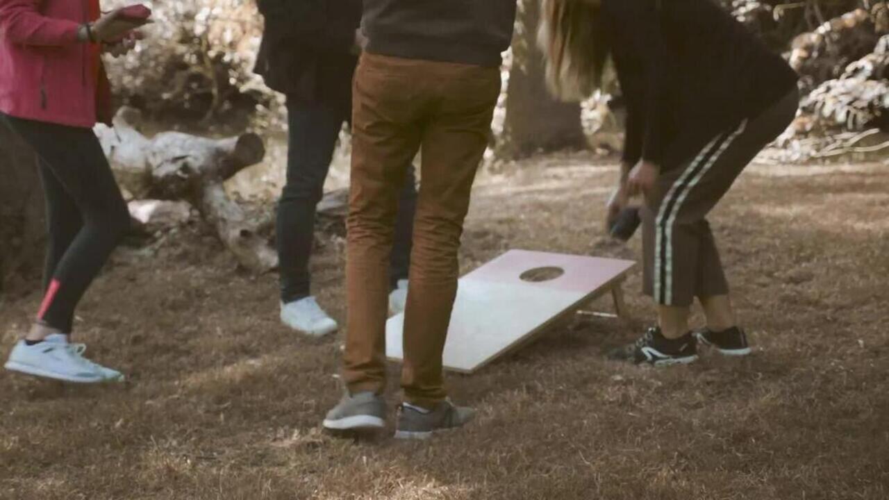 Tabla za cornhole veličine 50 x 90 cm se lako prenosi. Za dva do četiri igrača. Gađajte i osvojite 21 poen da pobedite u igri. Cornhole je zanimljiva igra pogodna za zabave.