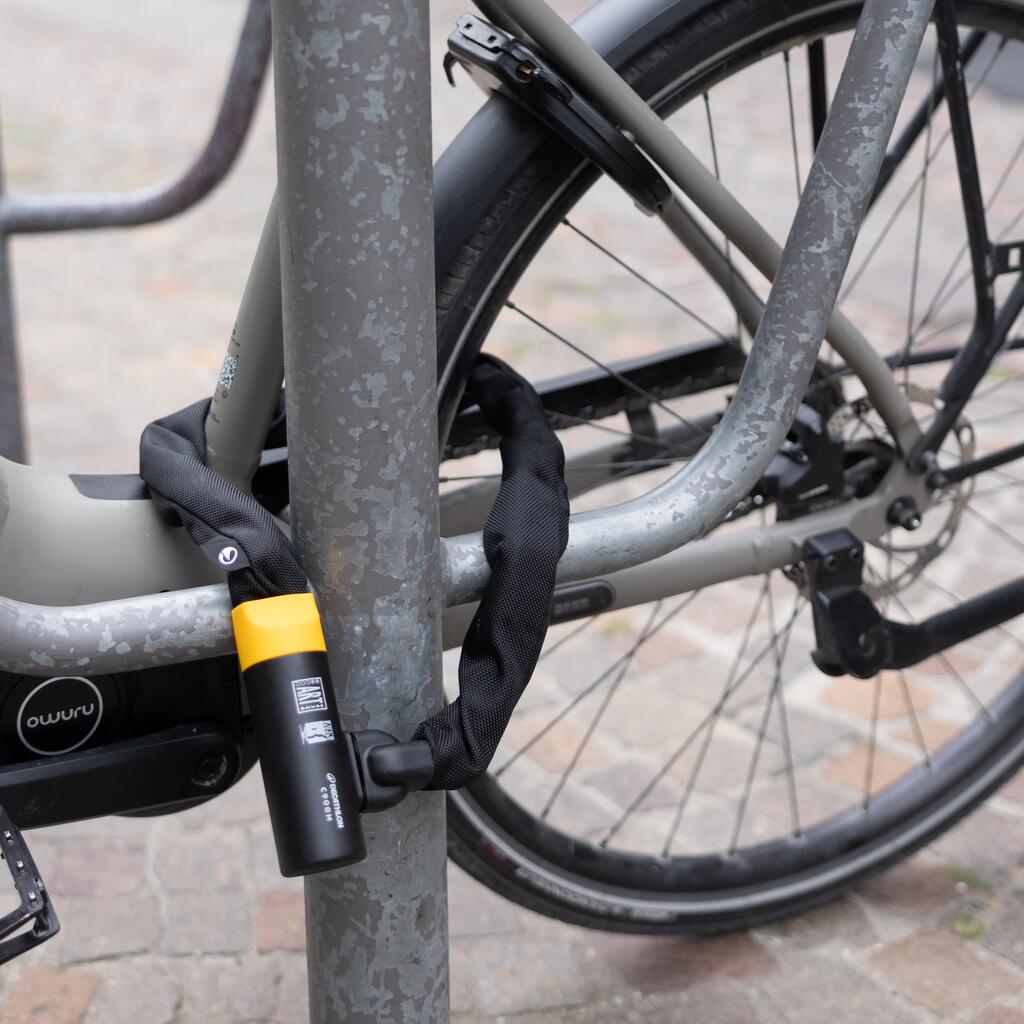Lanac protiv krađe dobre dužine za pričvršćivanje jednog bicikla na fiksne predmete širokog prečnika (npr. drveće, stubovi, rešetke itd.).ART2 i Sold Secure Silver sertifikat.