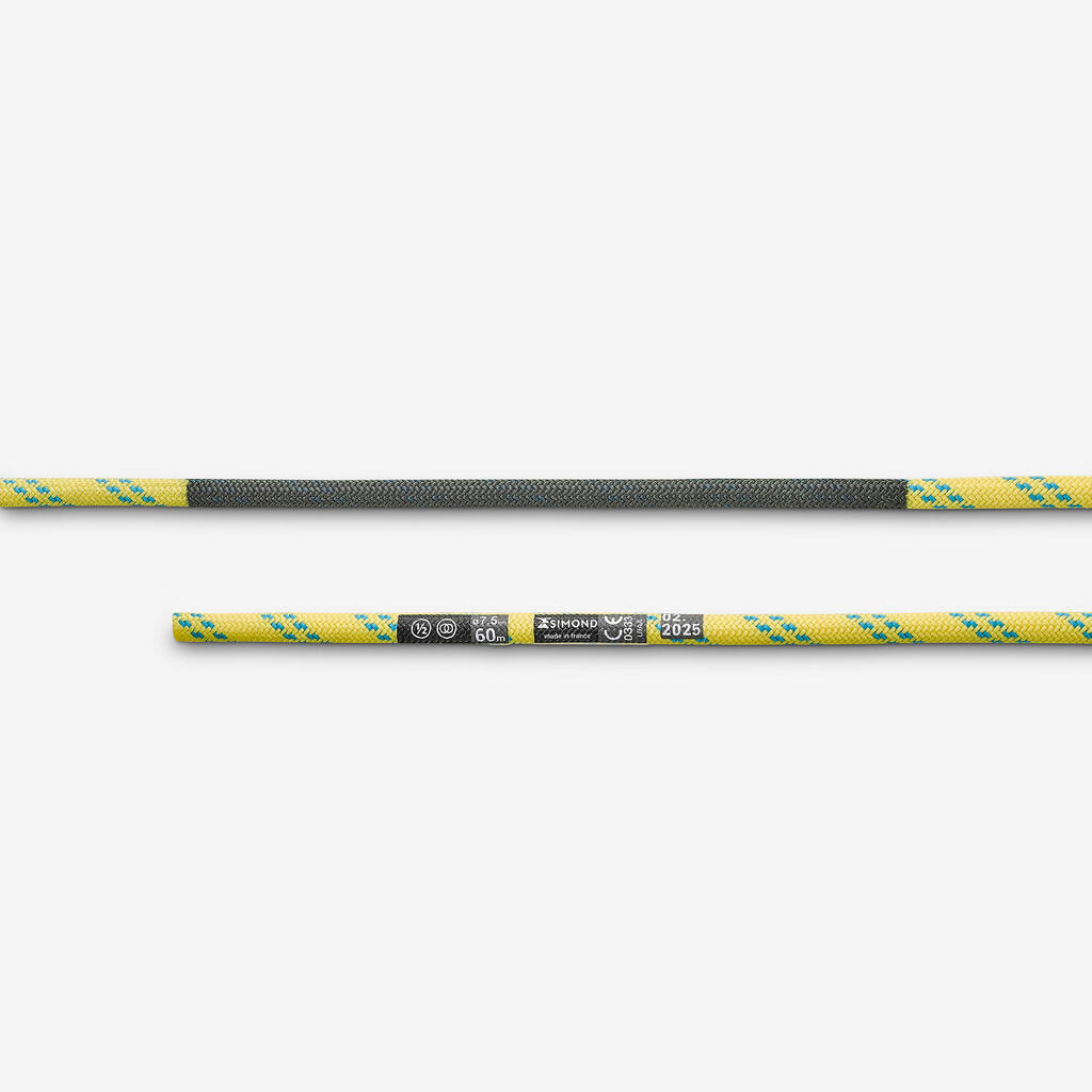 Žuto polu-uže za penjanje, planinarenje i spuštanje po ledu (7,5 mm x 60 m)