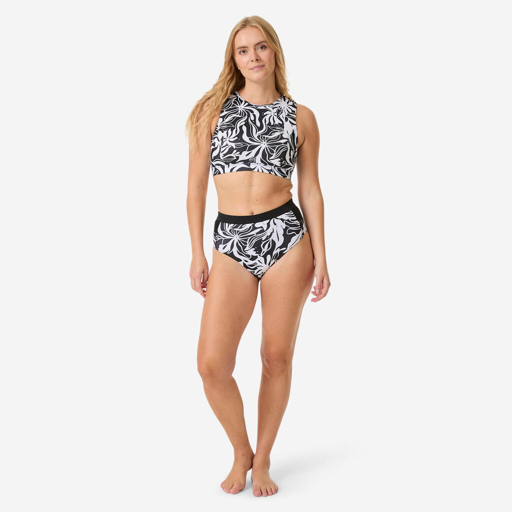 Iskusni surferi ponekad jašu na talasima koji mogu da im svuku kupaći kostim. Zato smo osmislili donji deo kupaćeg Rosa. Visoki struk s širokim pojasom i naglašeni izrezi obezbeđuju sigurno pristajanje uz ženstveni stil, a štiti stomak od trenja i voska.