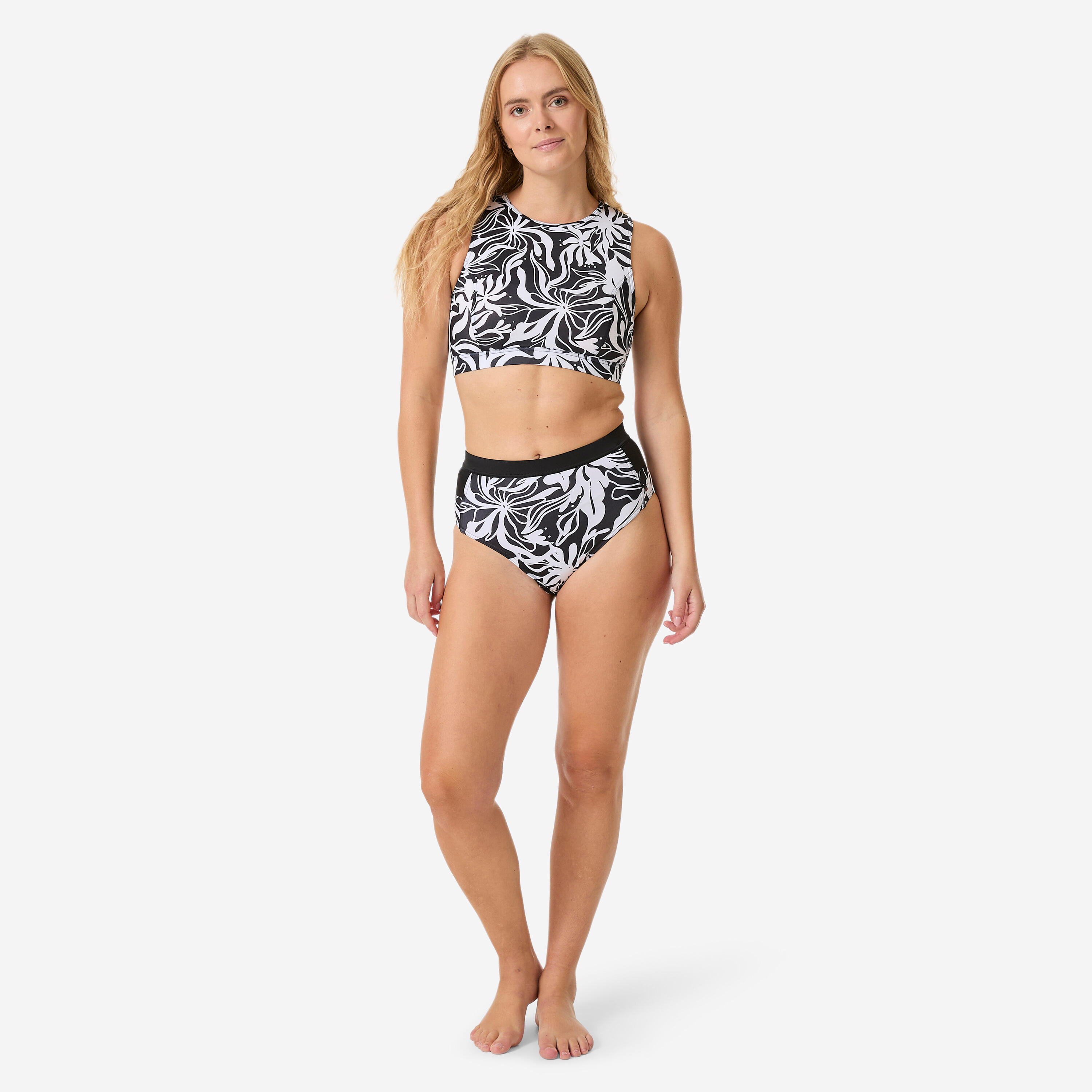 Da bi kupaći savršeno stajao u vodi, važno je da izaberete pravu veličinu dok ste suvi zato što kupaći kostimi u vodi olabavljuju. Zato vam preporučujemo da kupite ispravnu veličinu. Kupaći kostim treba da vam stoji čvrsto uz telo kada ga isprobavate. Elastin, koji je u sastavu naših kupaćih kostima, omekšava i opušta se u vodi.