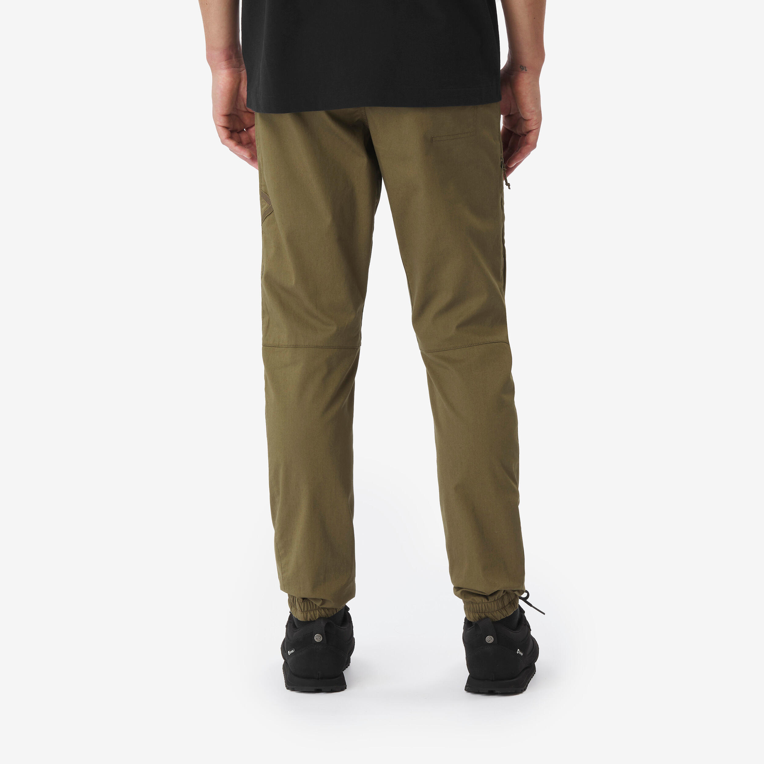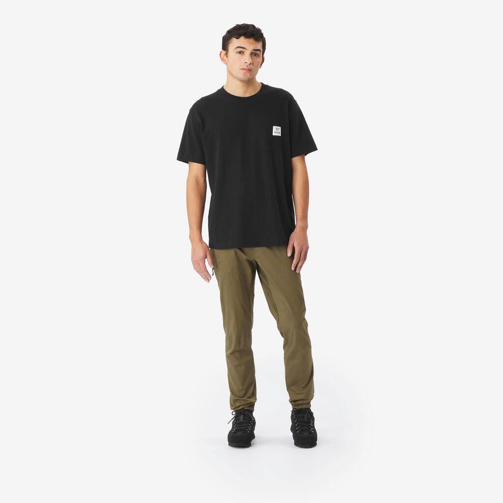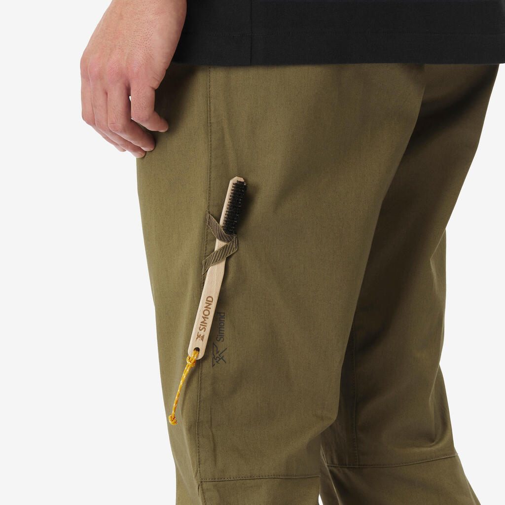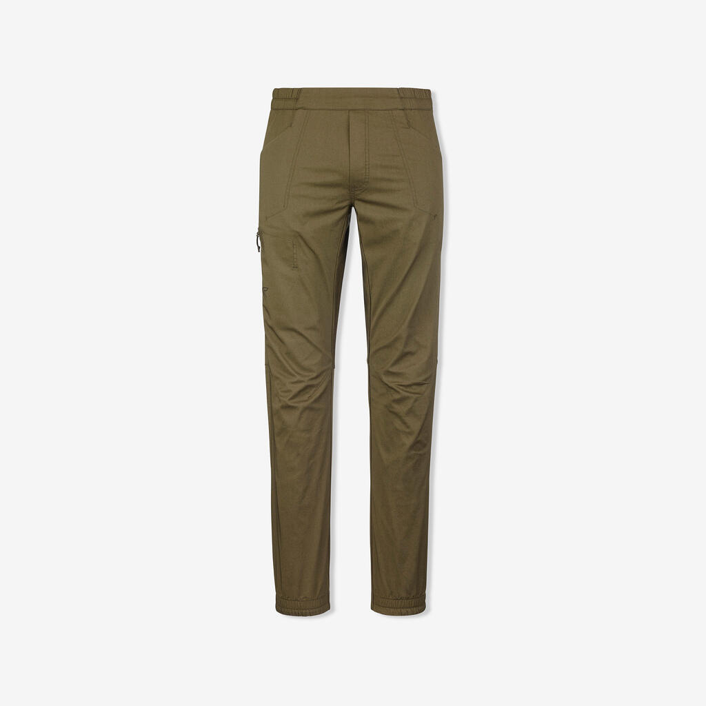 Udobne pantalone za penjanje od organskog pamuka, sa ravnim pojasom, bez šlica, od mekanog materijala. Pametne rastegljive manžetne znače da vidite obuću kada se penjete.