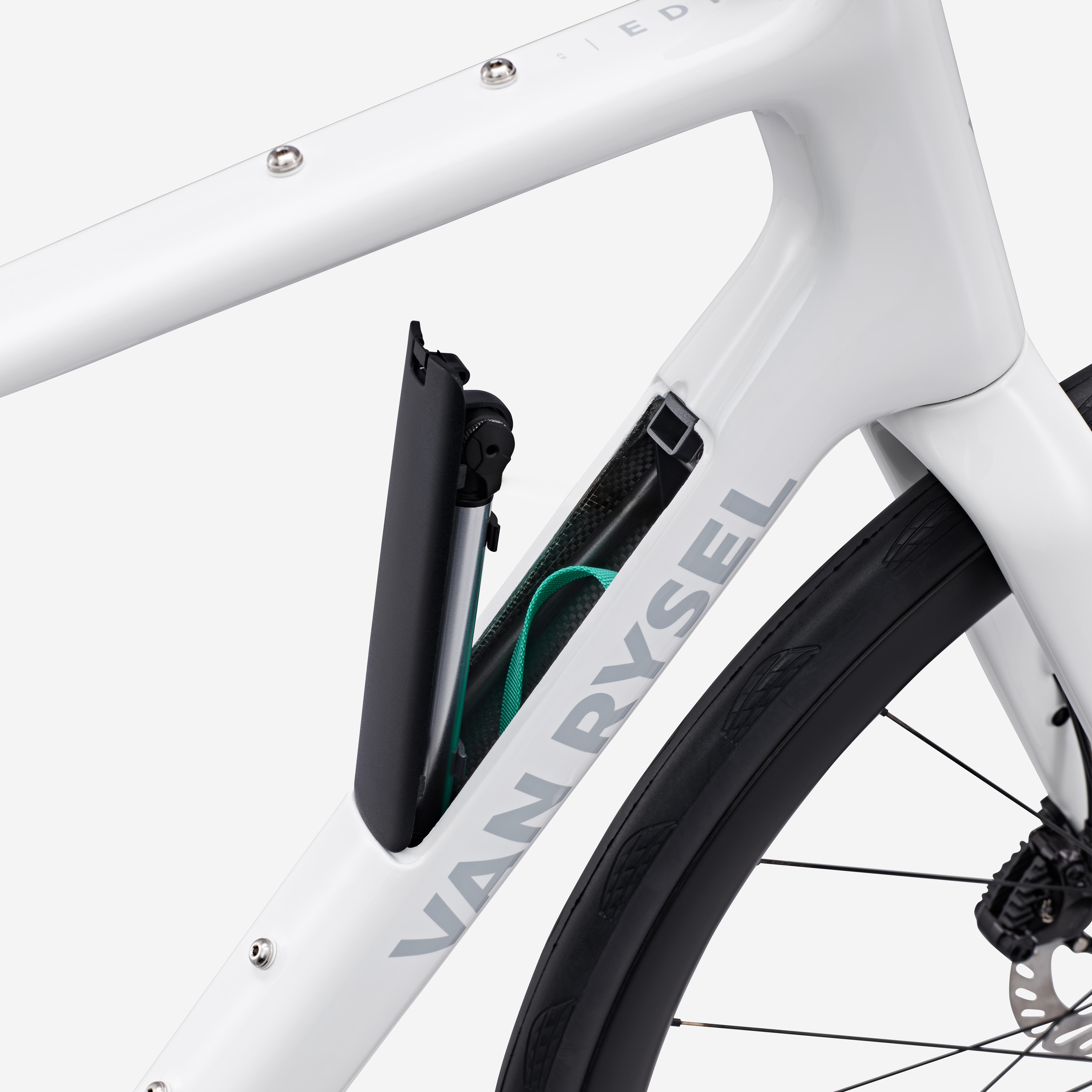 Ostavili smo prostor za odlaganje u donjoj cevi za optimizovani komplet za popravku koji dolazi s biciklom.