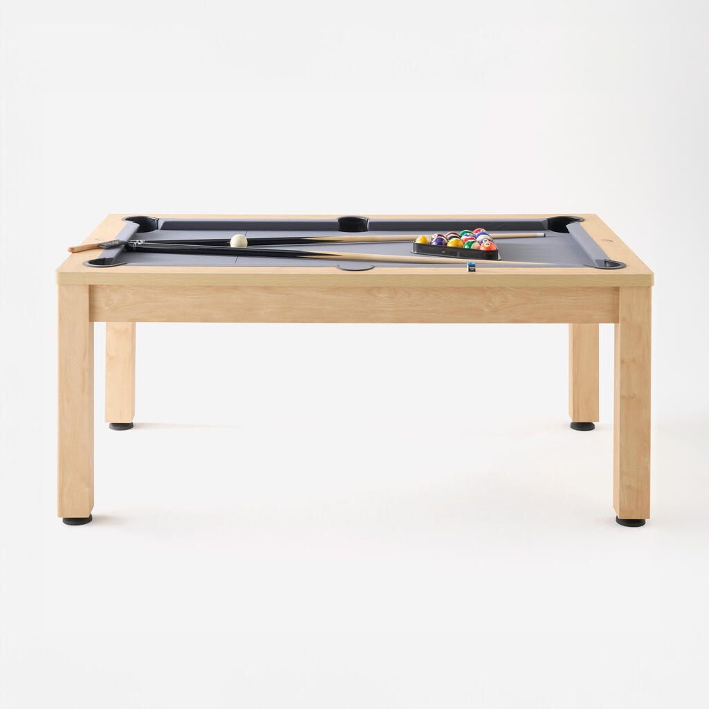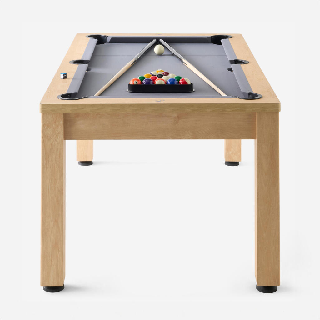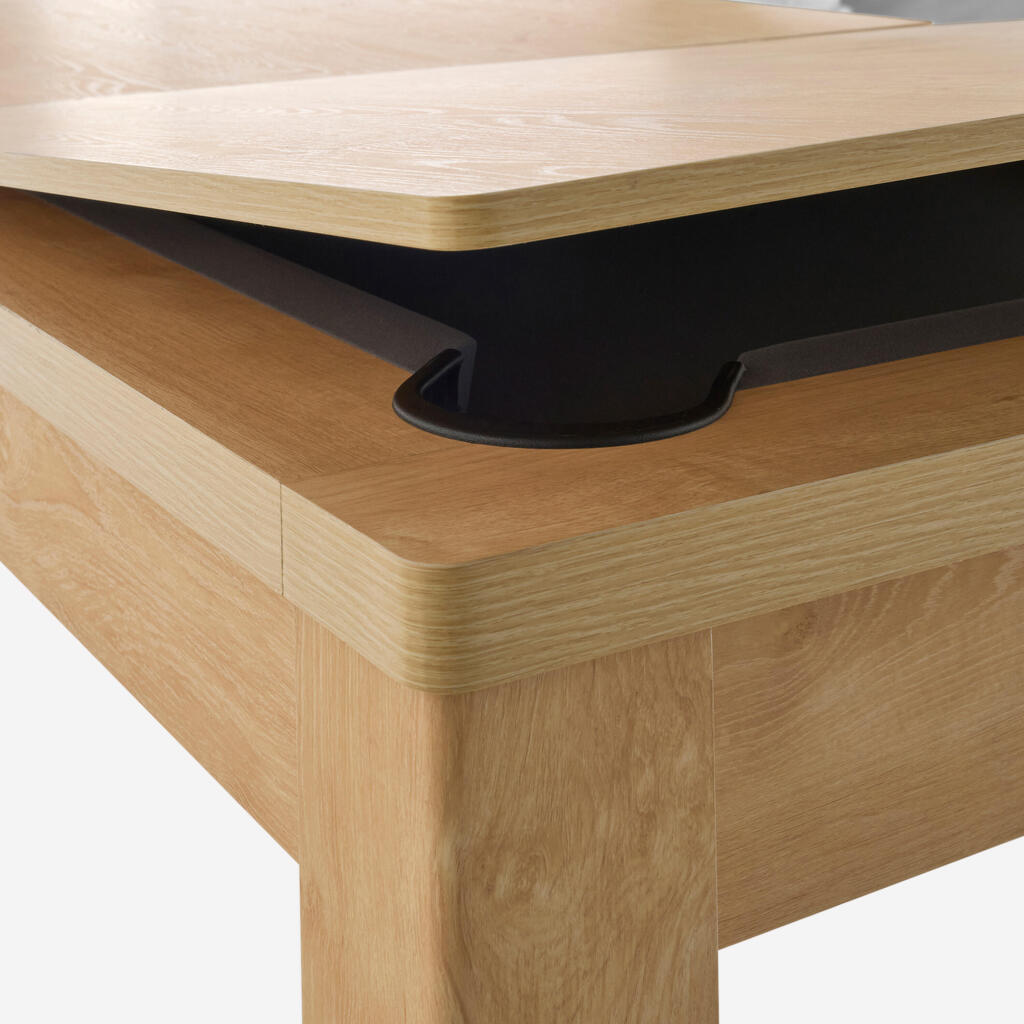 Sto za bilijar se pretvara u trpezarijski sto za 2 minuta. Jednostavno spojite dve table za sto nakon što stavite ostalo u sredinu stola. Toplo Vam preporučujemo da koristite stoljnjak ili da postavite prostirke kako bi zaštitili table za sto od ogrebotina.