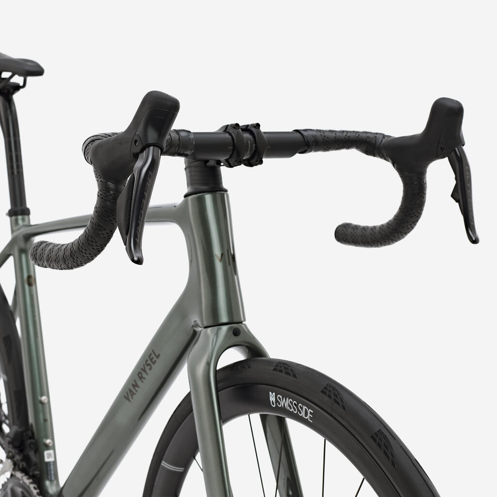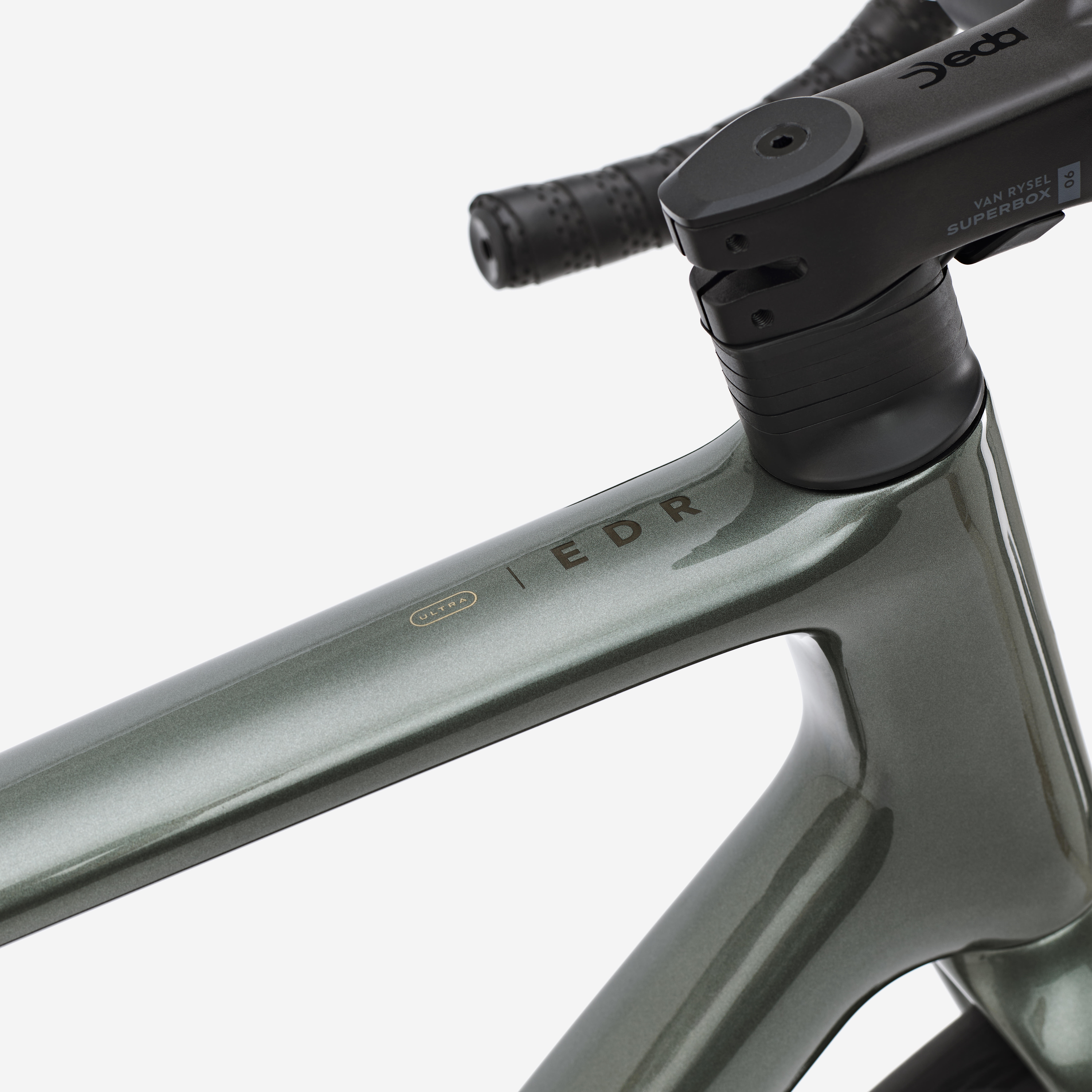 Karbonski upravljač VR s proširenjem od 8° i ergonomskim oblikom na gornjem delu, za smanjenje pritiska, sa mogućnošću postavljanja ekstenzija. Traka za upravljač EDR Ultra Gel