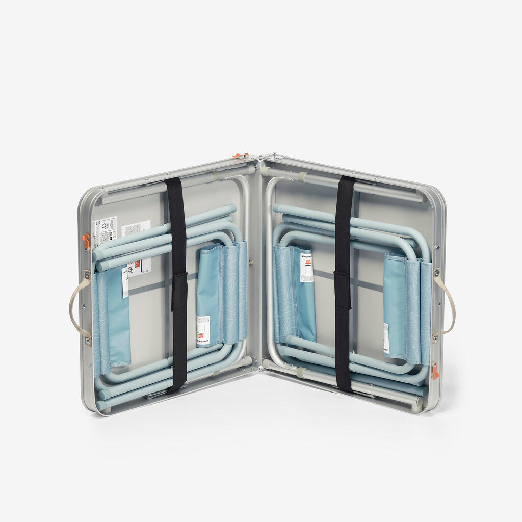Ovaj sklopivi sto za kampovanje za 4-6 osoba dizajniran je da bude kompaktan i čvrst. Priložene su četiri sklopive stolice.