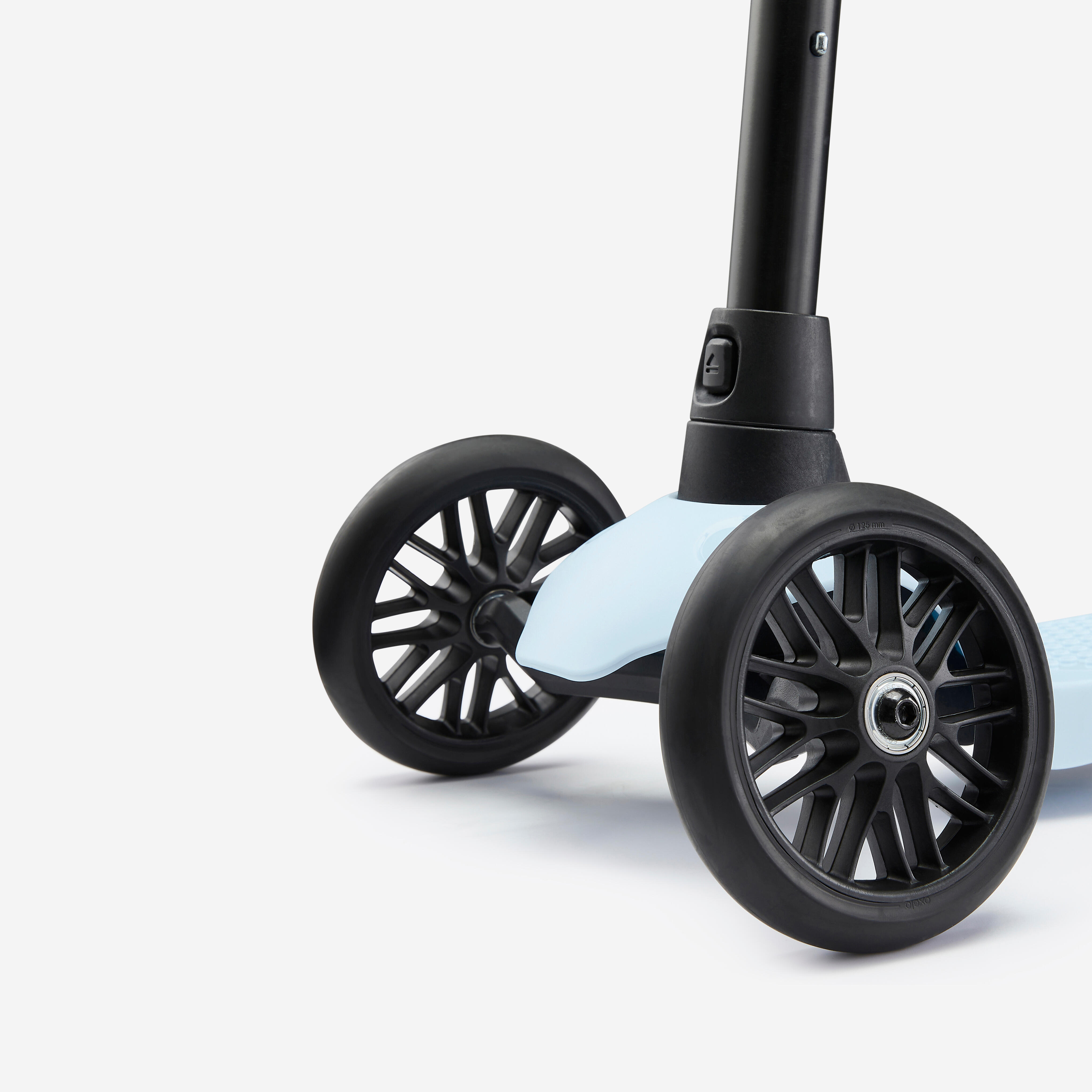 Zbog prednja dva točka i jedinstvenog, patentiranog sistema upravljanja. Ova kombinacija je osmišljena u saradnji sa fizioterapeutom i omogućava da se gazište ukosi do preciznog ugla, koji je bezbedan za decu (što znači da neće izgubiti ravnotežu kada skreću ili kod odgurivanja).