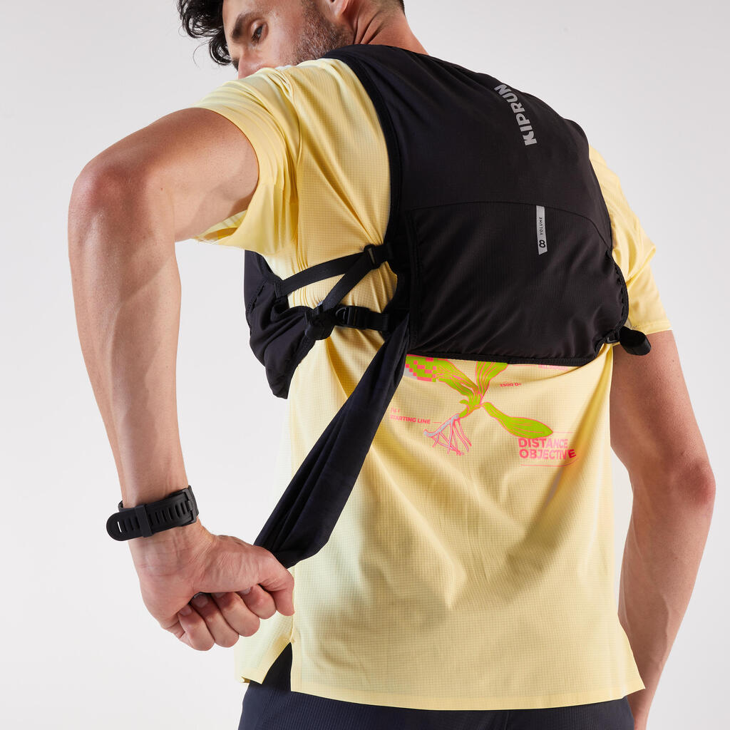 Naš tim entuzijasta dizajnirao je ovu torbu za trčanje od 8 L za nošenje opreme, laku hidrataciju i skladištenje dve boce od 500 ml tokom trčanja.