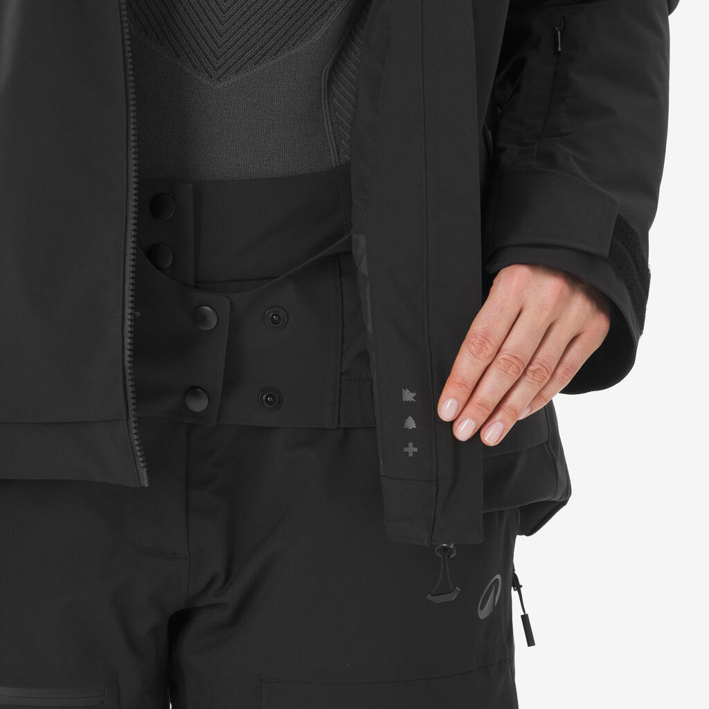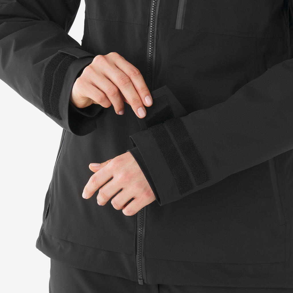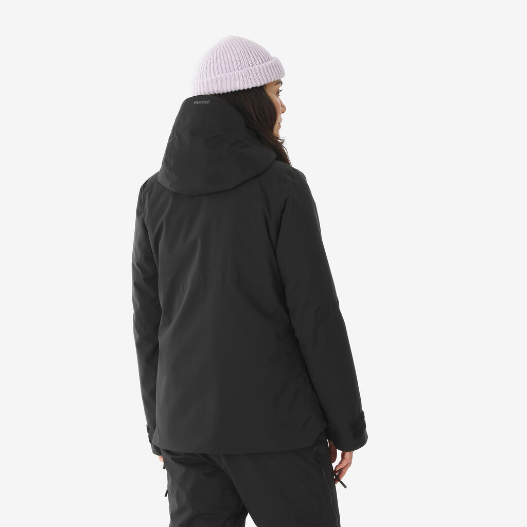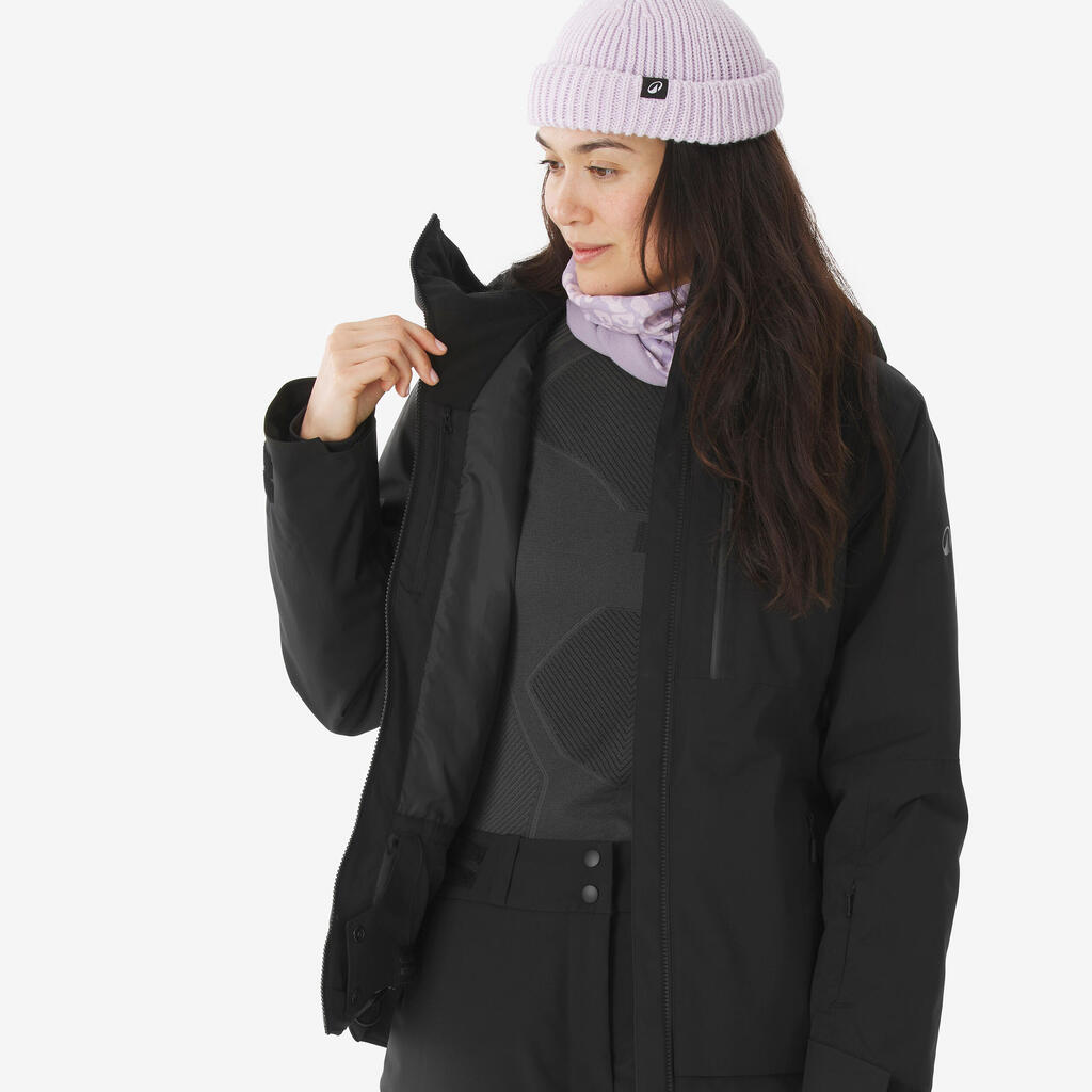 Crna ženska topla i prozračna jakna za skijanje i snoubording 500 AM