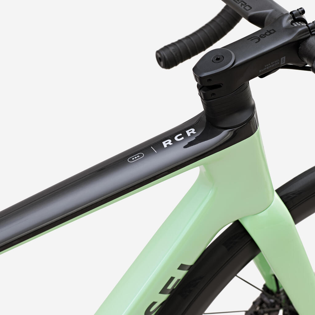 Ono što čini karbonski ram je njegova geometrija, oblici i raspored. Polaganje je način na koji se sklapaju karbonska vlakna. Nemaju sva vlakna ista svojstva. Na RCR PRO smo odabrali izuzetna vlakna koja čine bicikl tvrđim u područjima koja su pod najvećim stresom i koja blago smanjuju težinu. RCR Pro ram koriste profesionalni vozači u Decathlon Ag2r La Mondiale svetskom tur timu.