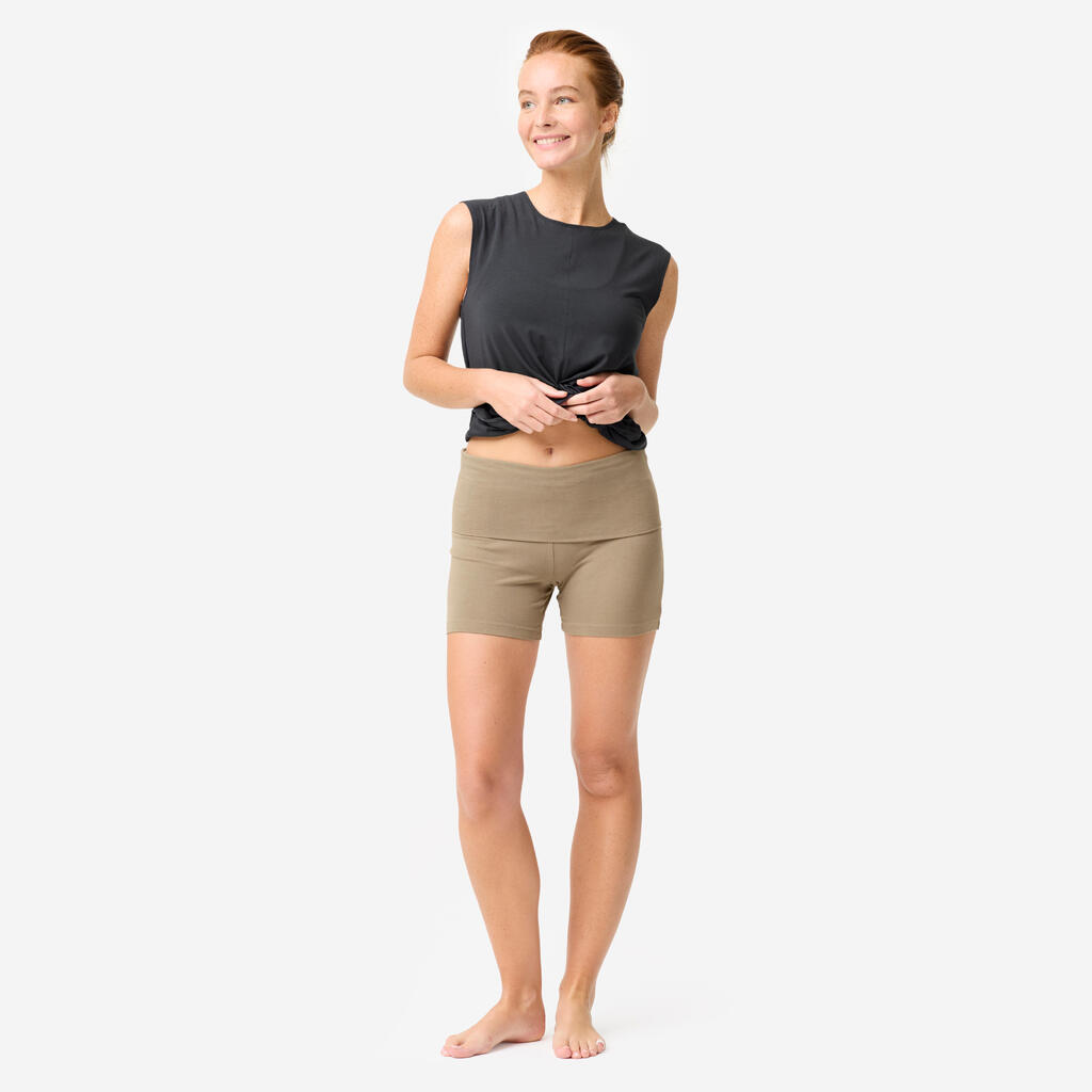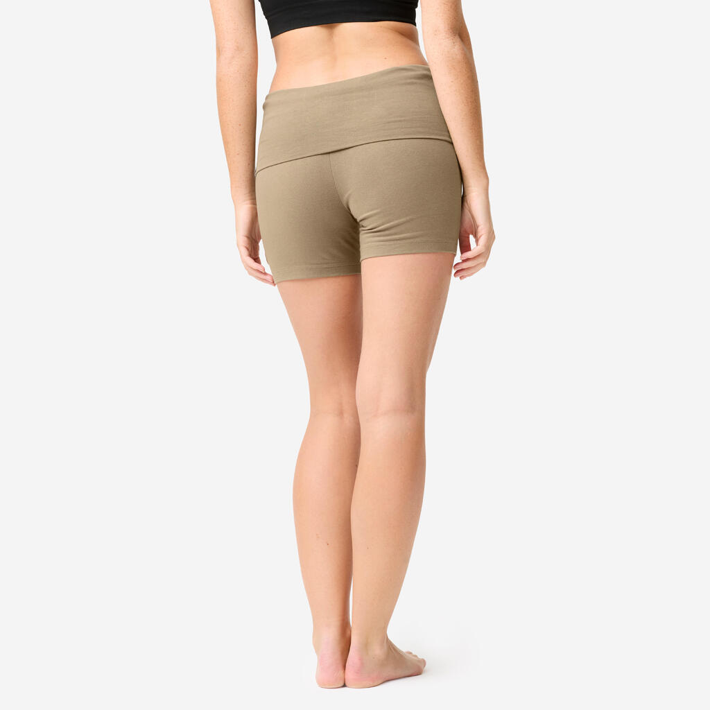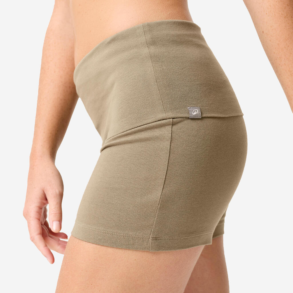 Mekani pamučni šorts. Visok pojas, koji se može preklopiti, pruža potporu stomačnim mišićima i prilagođava se svakoj figuri, čak i trudnicama.