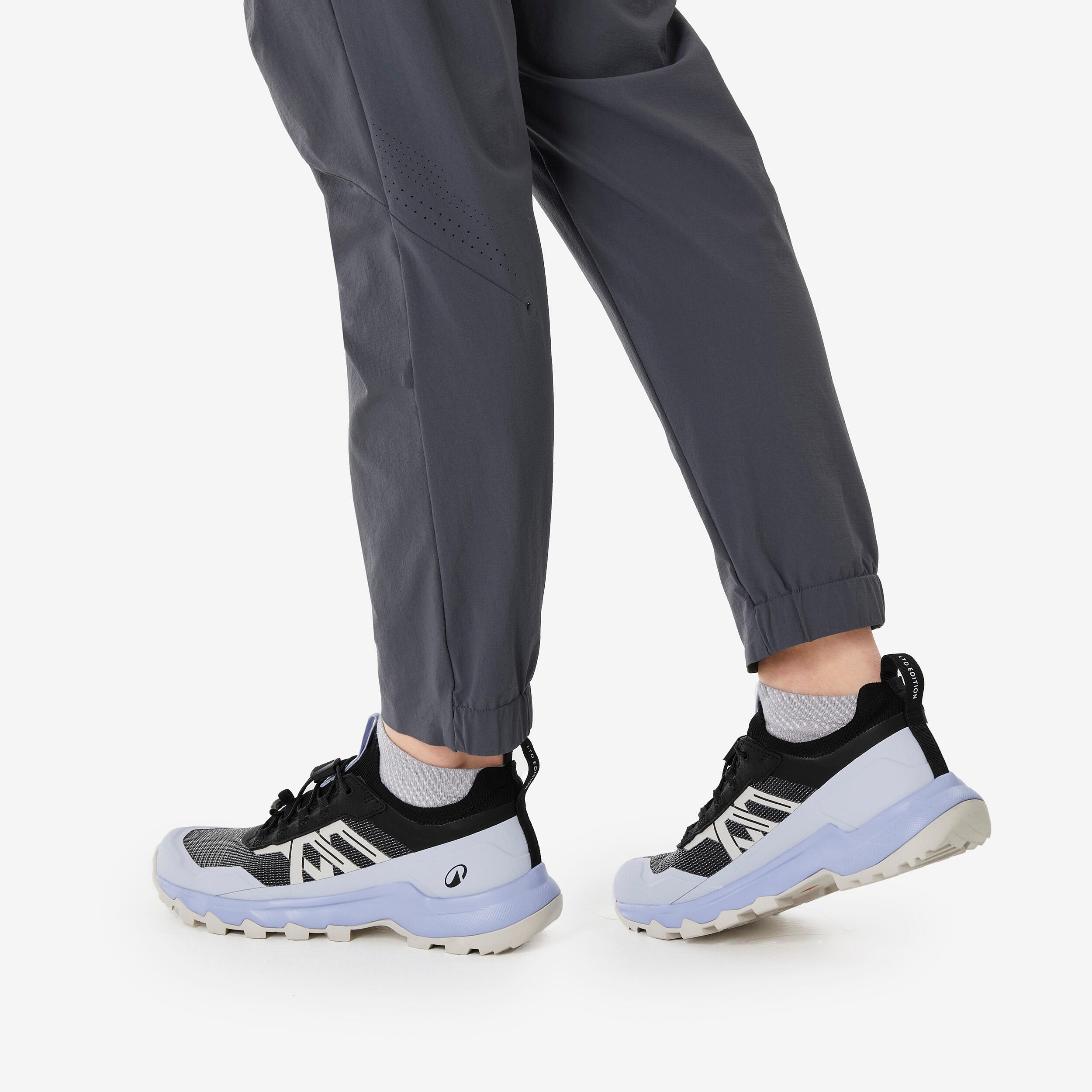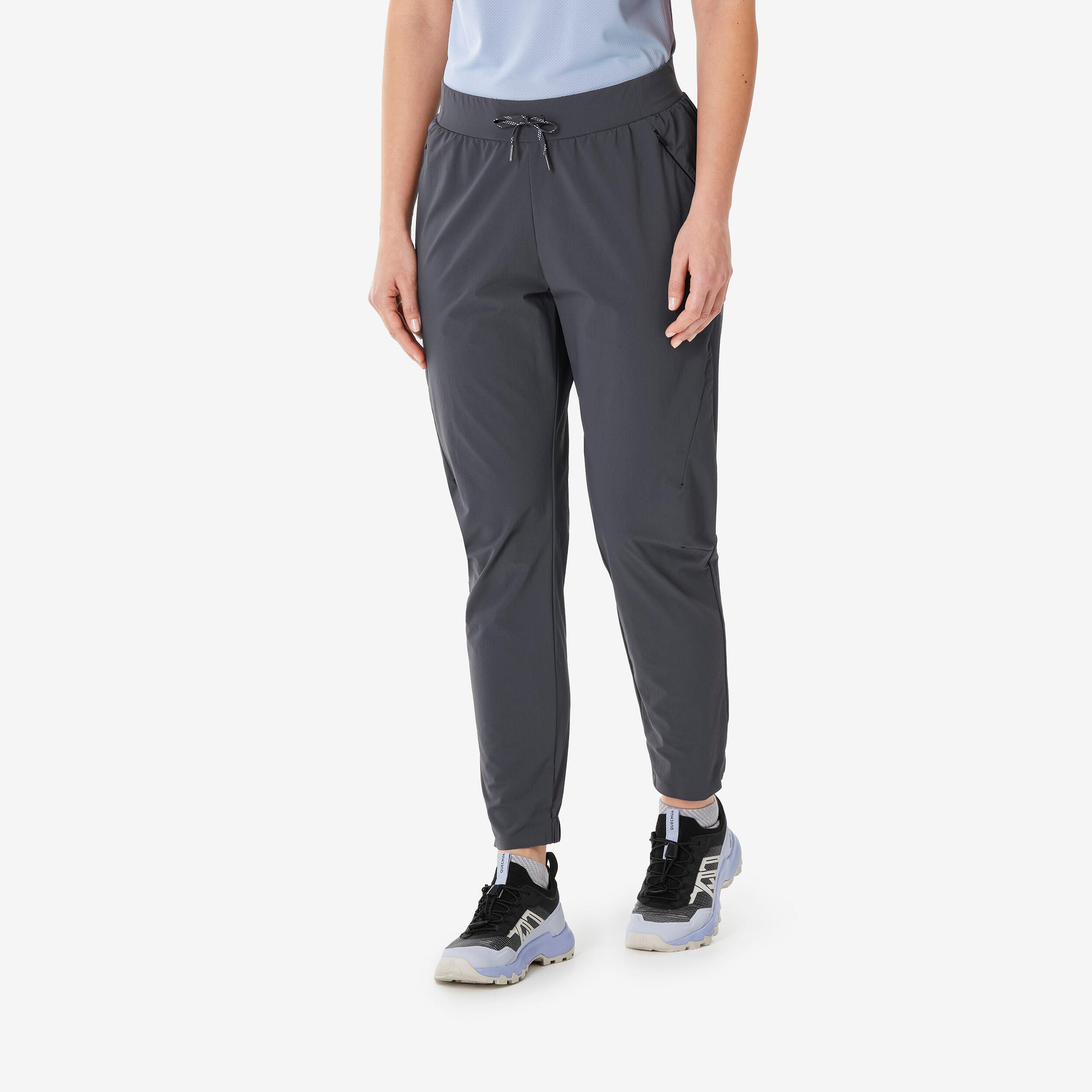Za planinarenje sa stilom! Naše pantalone za planinarenje kombinuju prozračnu sintetičku tkaninu sa uskim krojem. Pojas i rastegljivi gležnjevi se prilagođavaju vašem obliku tela.