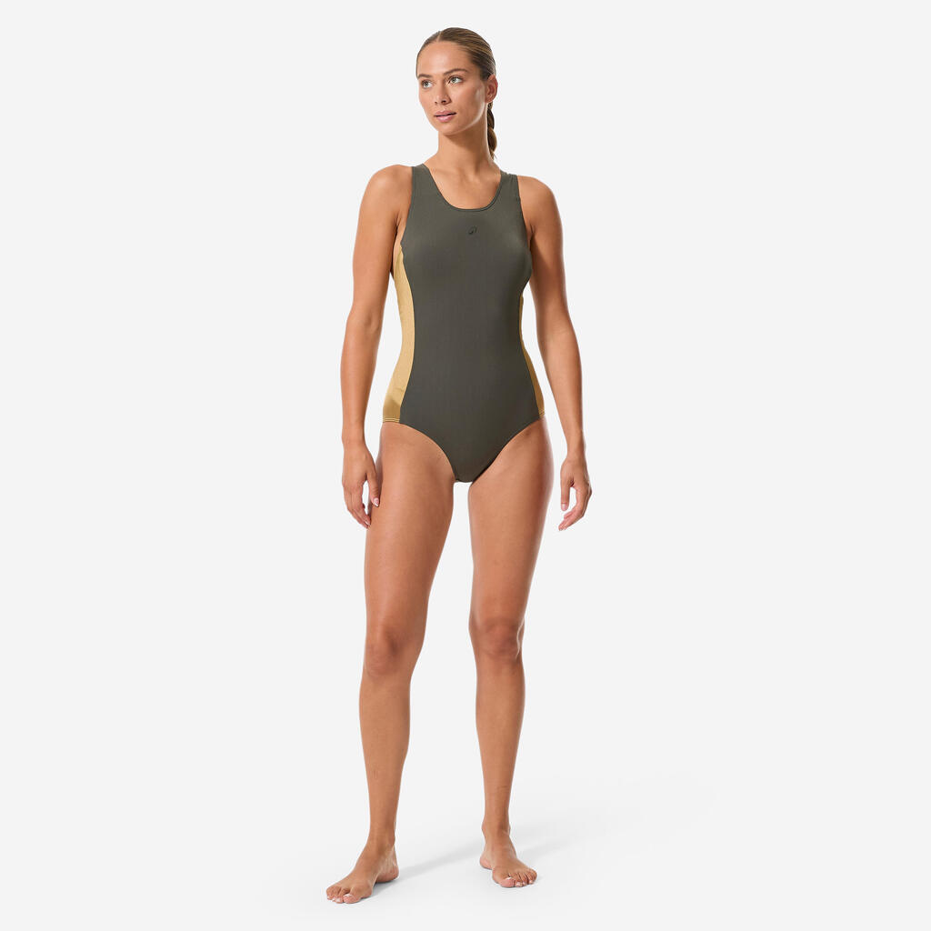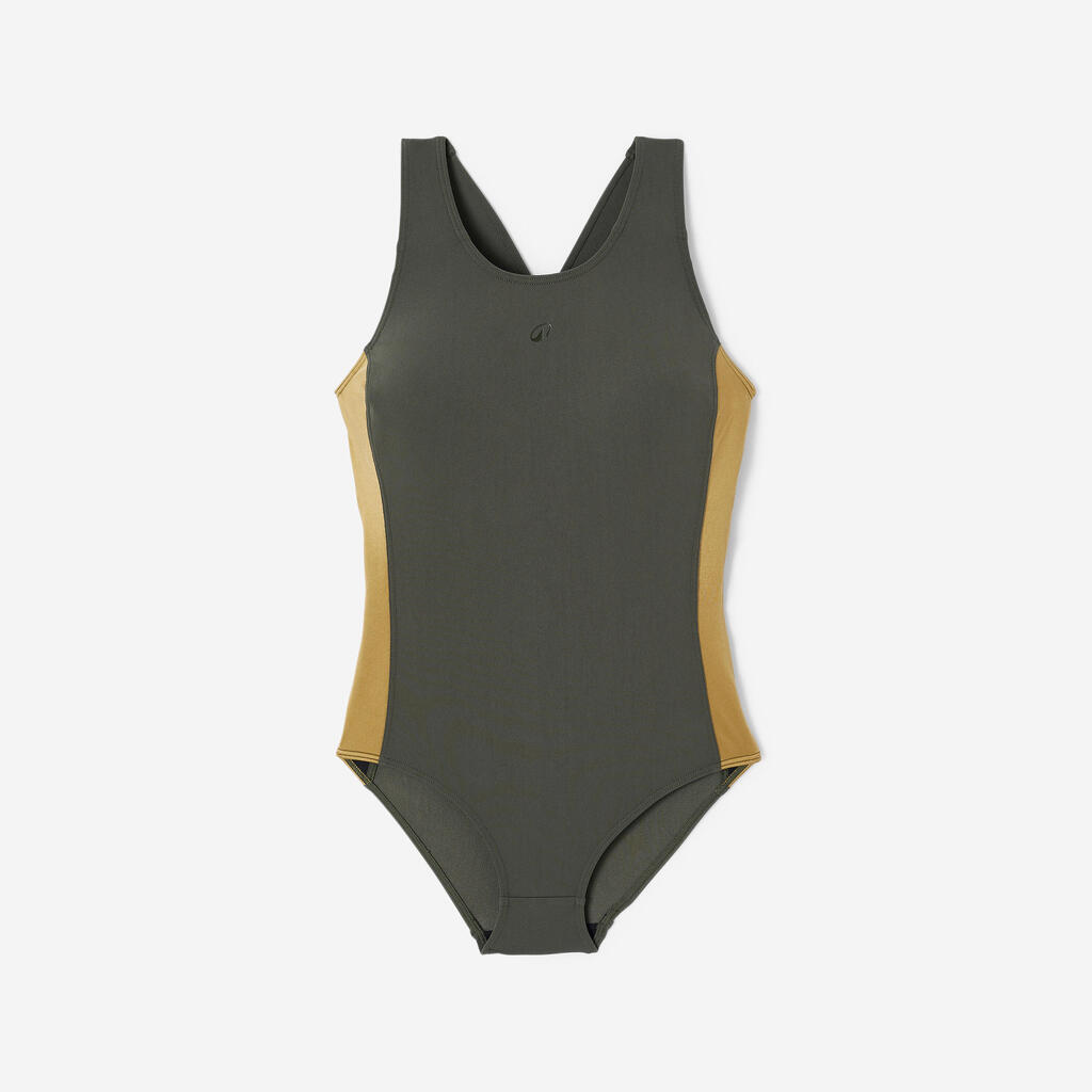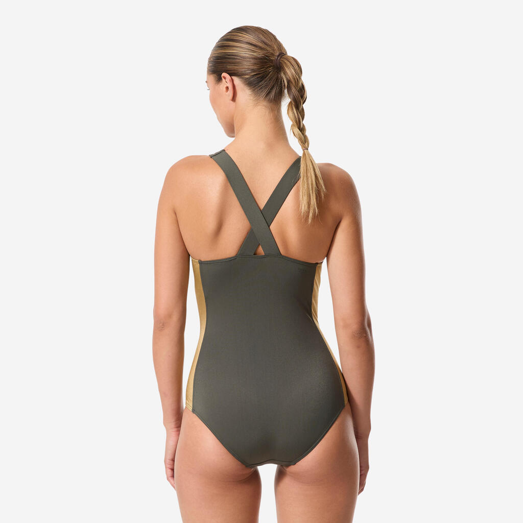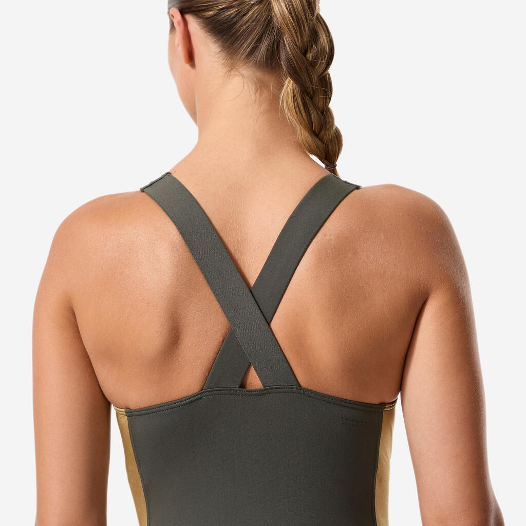Ovaj kupaći kostim otporan na hlor prati vaš trening! Sa širokim bretelama, visokim leđima u obliku slova V i niskim dekolteom, pruža pokrivenost i dobru potporu.