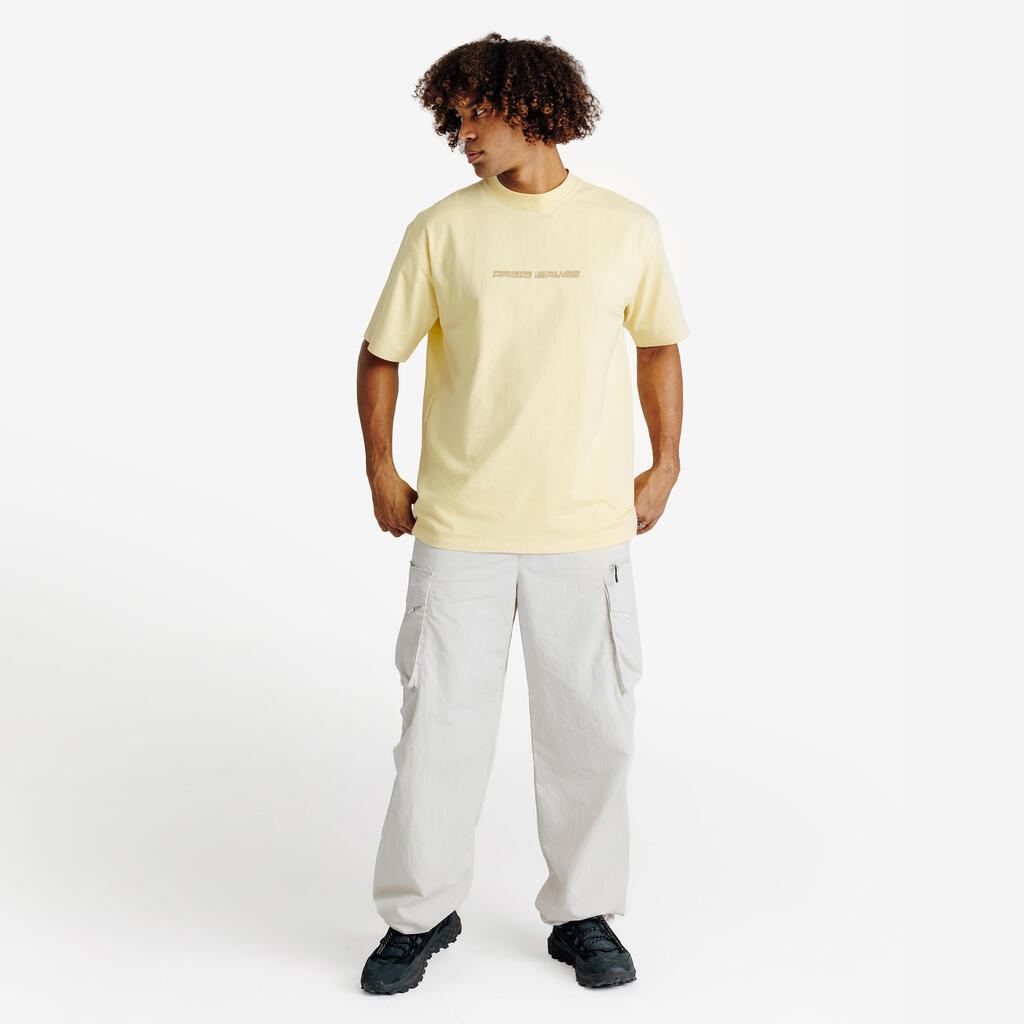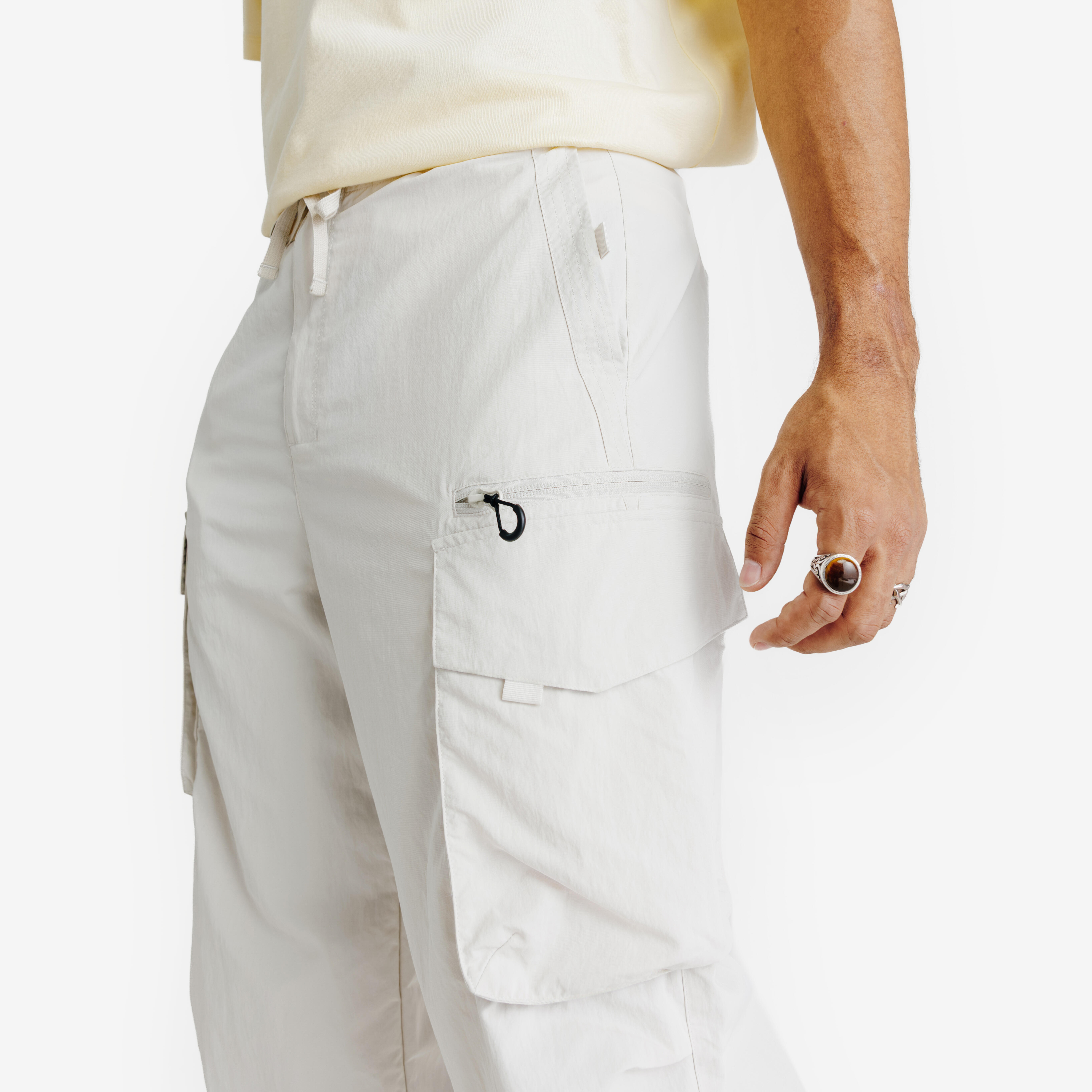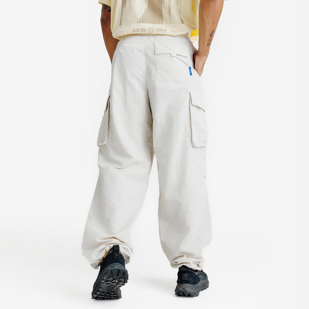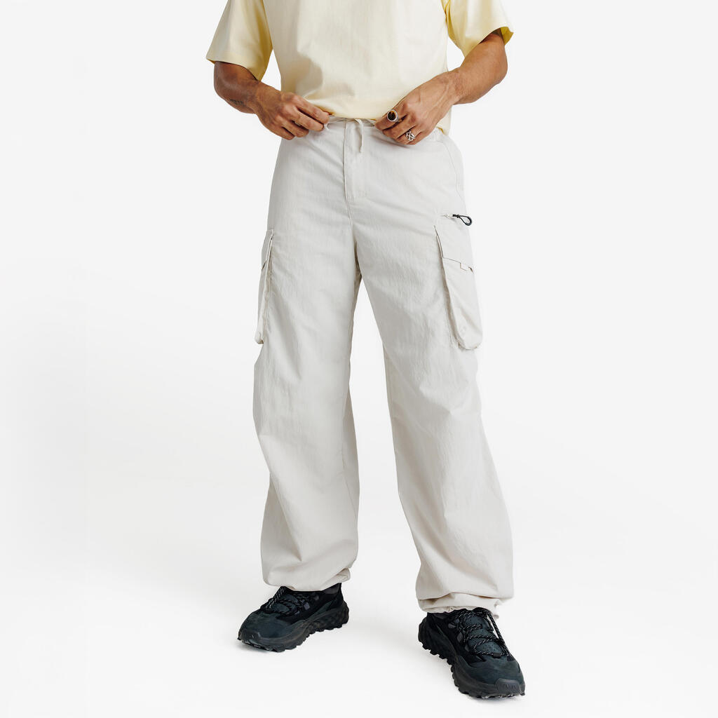 Široke kargo pantalone, napravljene od vodoodbojne teksturirane tkanine sa naboranom završnom obradom, omogućavaju vam da uživate u životu i sportu.