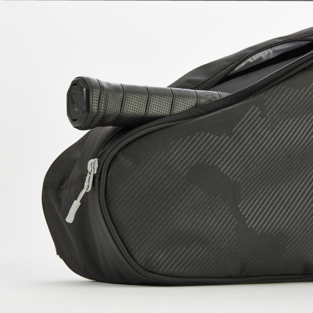 Ova torba za sportove s reketom može da drži do tri teniska reketa (za decu ili odrasle). Ima unutrašnji mrežasti džep sa patentnim zatvaračem, remen za nošenje i ručku.