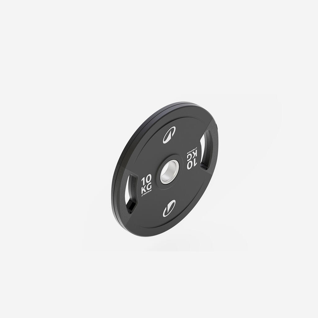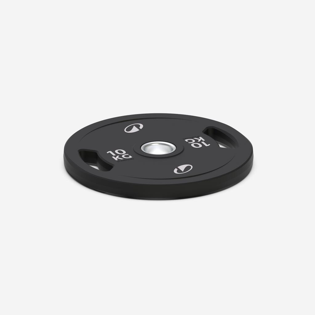 Pločasti teg od 10 kg sa širim ivicama, za hvat bez napora i štipanja prstiju. Dostupan od 0,5 kg do 20 kg.