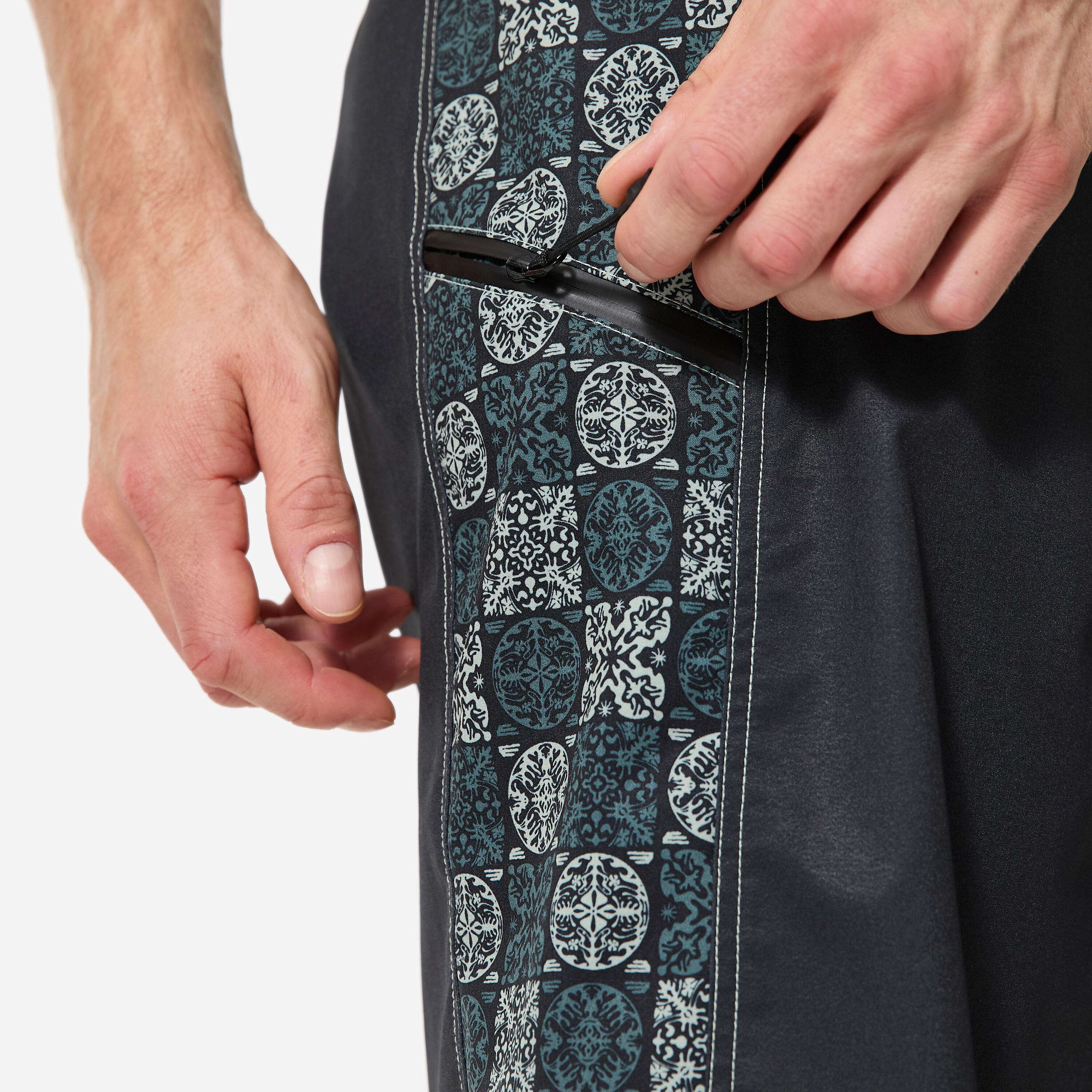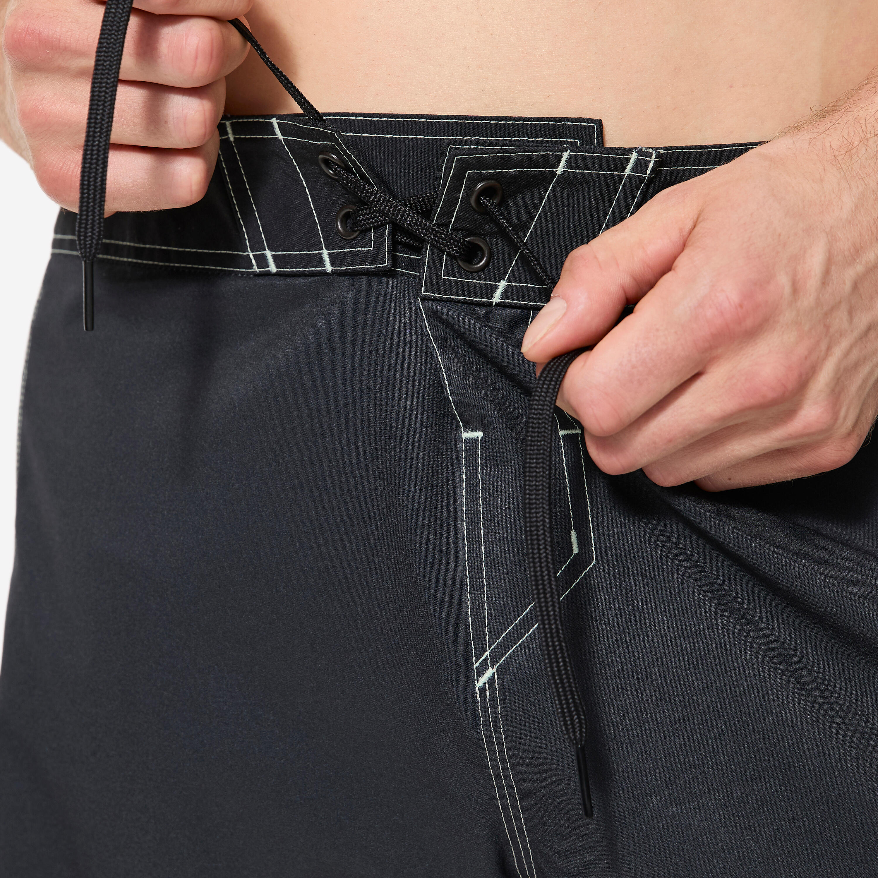 Šorts BS500 ima ravan učkur protiv klizanja koji stoji bezbedno vezan tokom surfovanja ili bavljenja drugim sportovima na vodi.