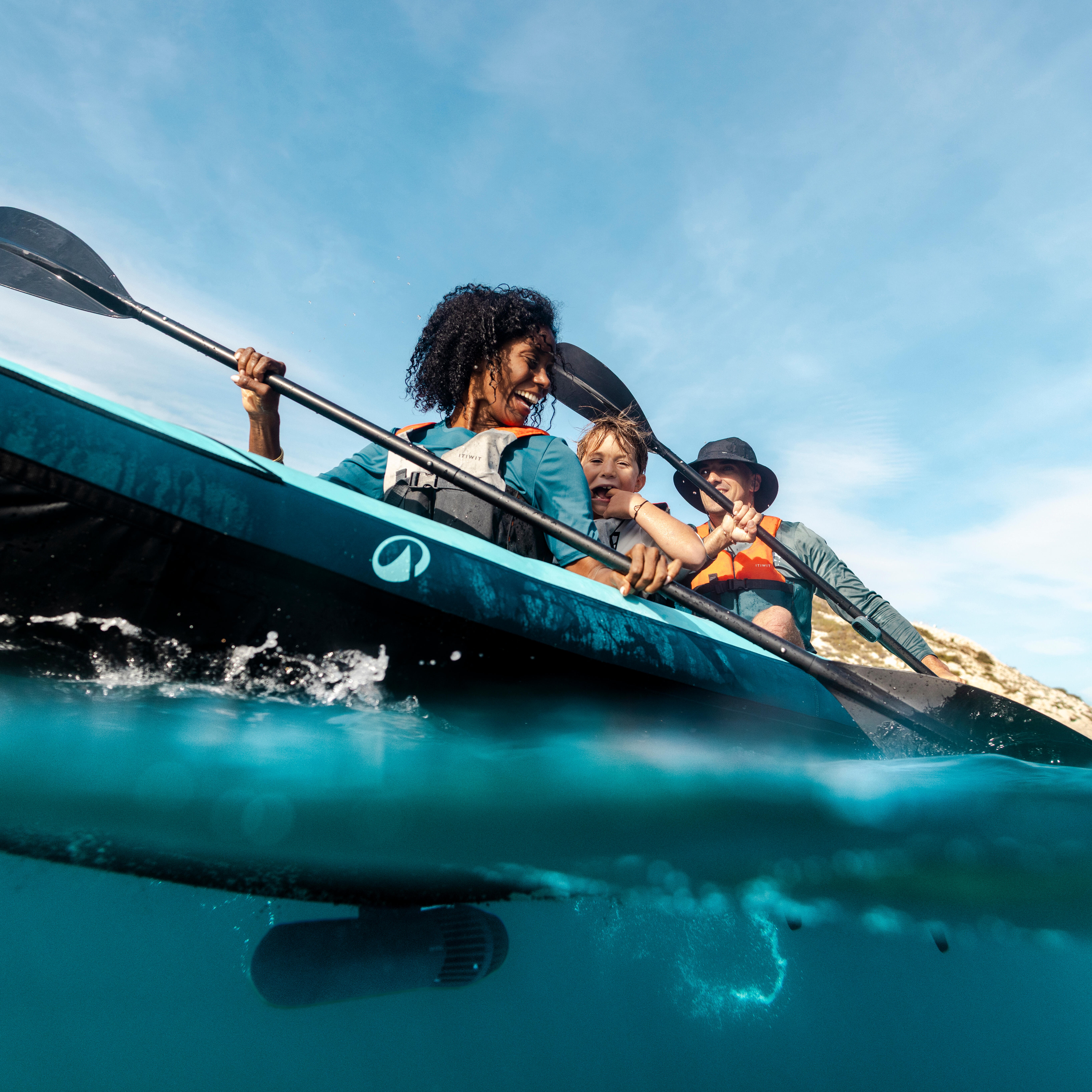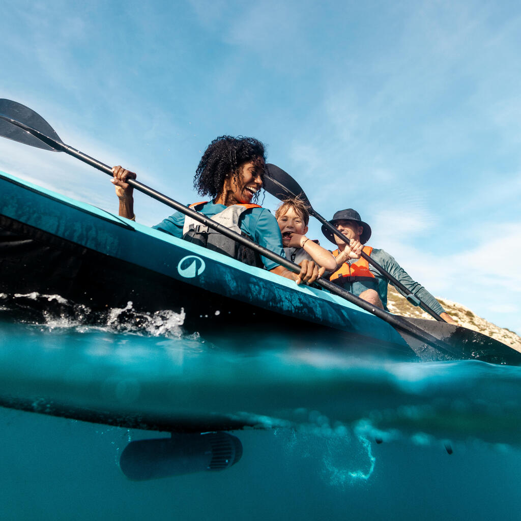 Kajak na naduvavanje dizajniran za tri osobe, idealan za dve odrasle osobe i dete. Za dve osobe nudi dovoljno prostora za noge ili opremu na plovilu. Otkriće i zabava zagarantovani!