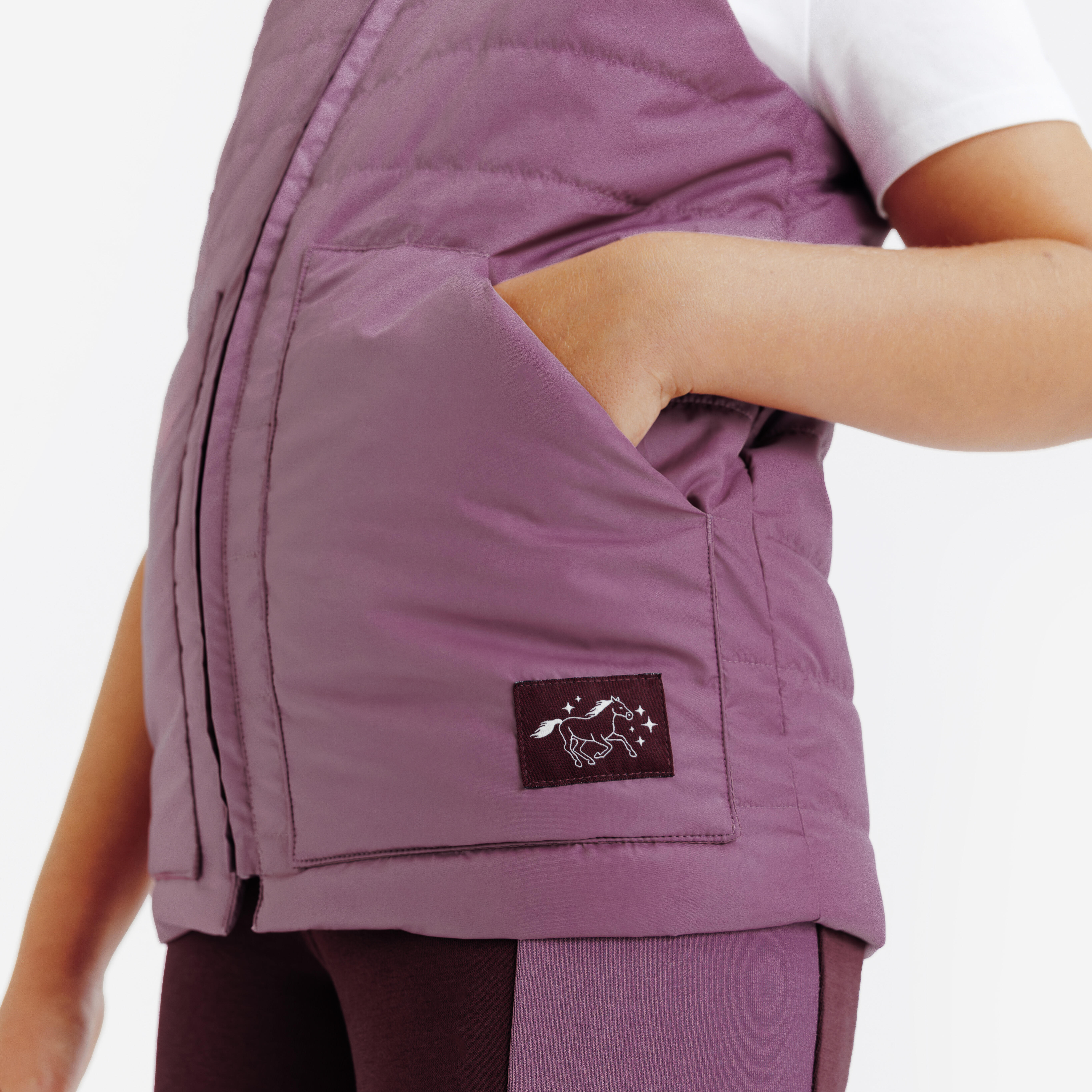 Ljubičasti dečji perjani prsluk za jahanje Magic