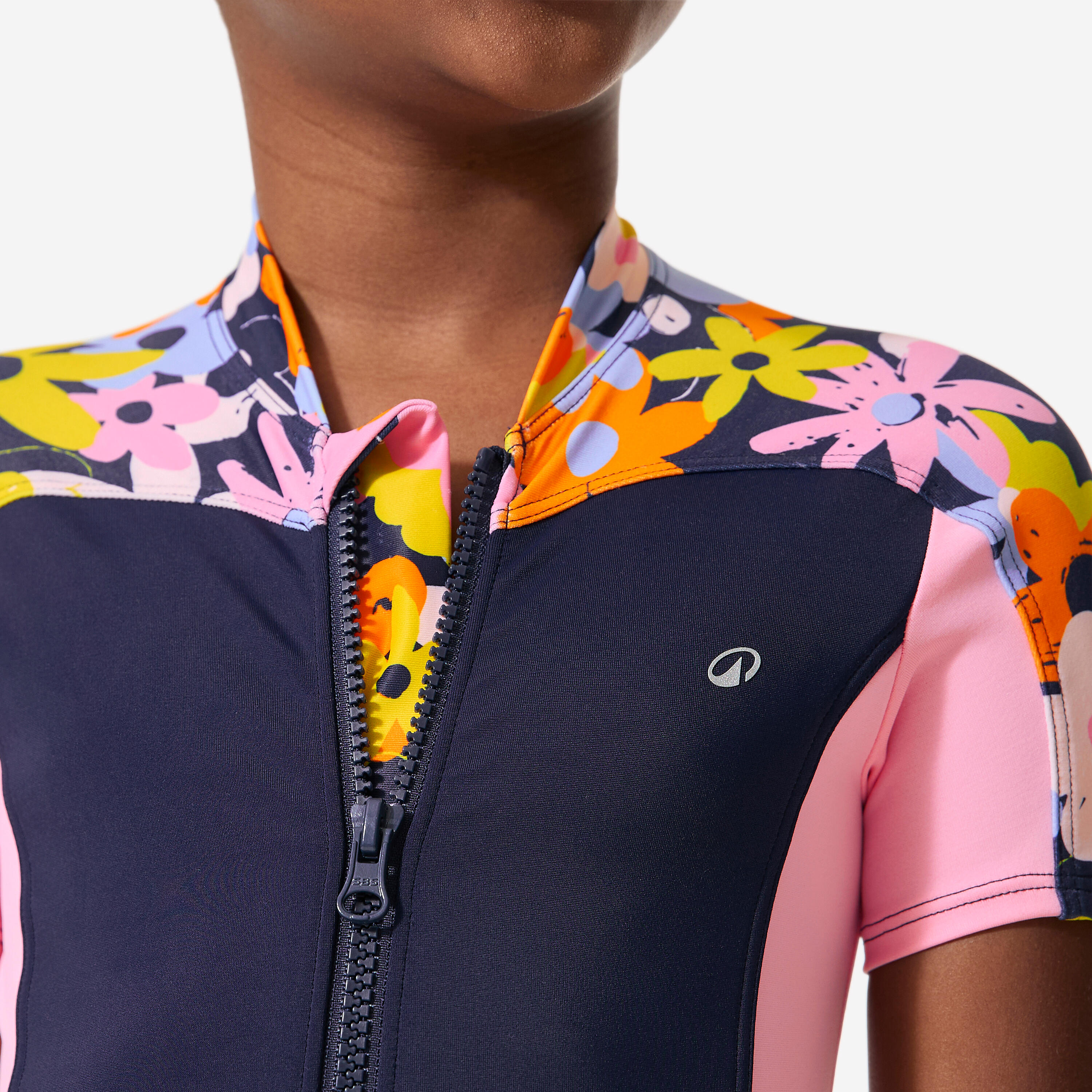 Ovaj kupaći kostim za celo telo se lako oblači zahvaljujući prednjem rajsferšlusu. Kratki rukavi i kroj šortsa štite ramena i pružaju sportski izgled!