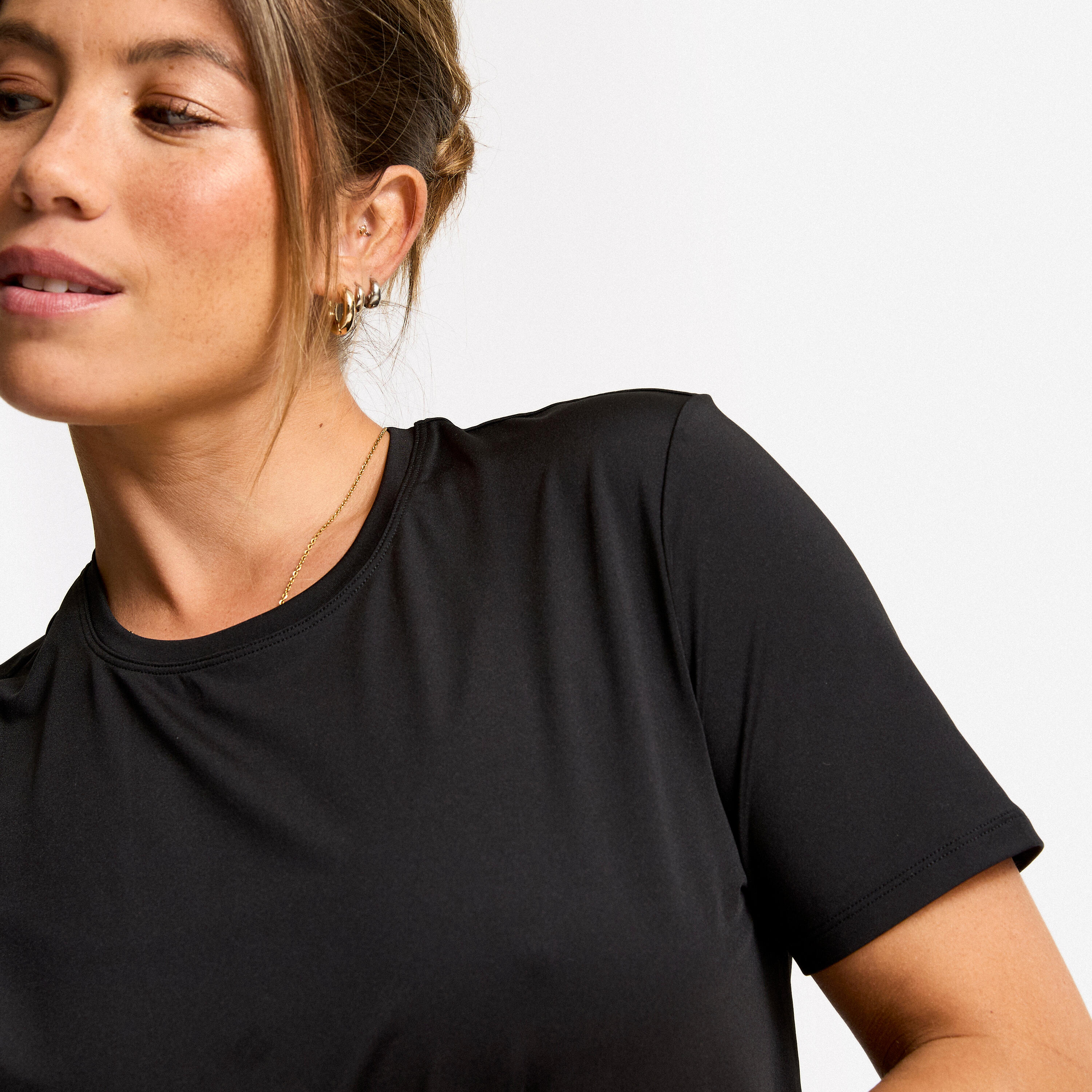 Elastična tkanina glatko prati svaki vaš pokret.Udoban osnovni komad za sve aktivnosti fitnesa.